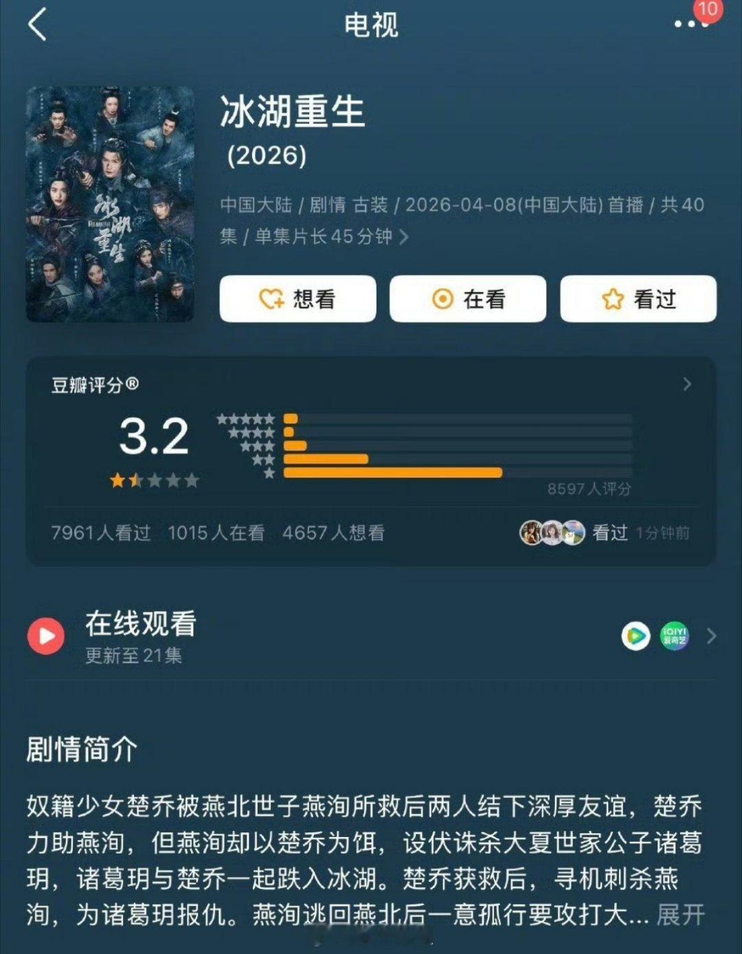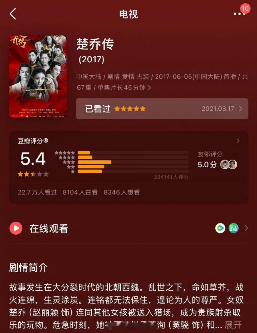 赵丽颖主演的《楚乔传》db开分是5.4分,但李昀锐跟黄杨钿甜主演的《冰湖重生》才3.2分,没有对比就没有伤害