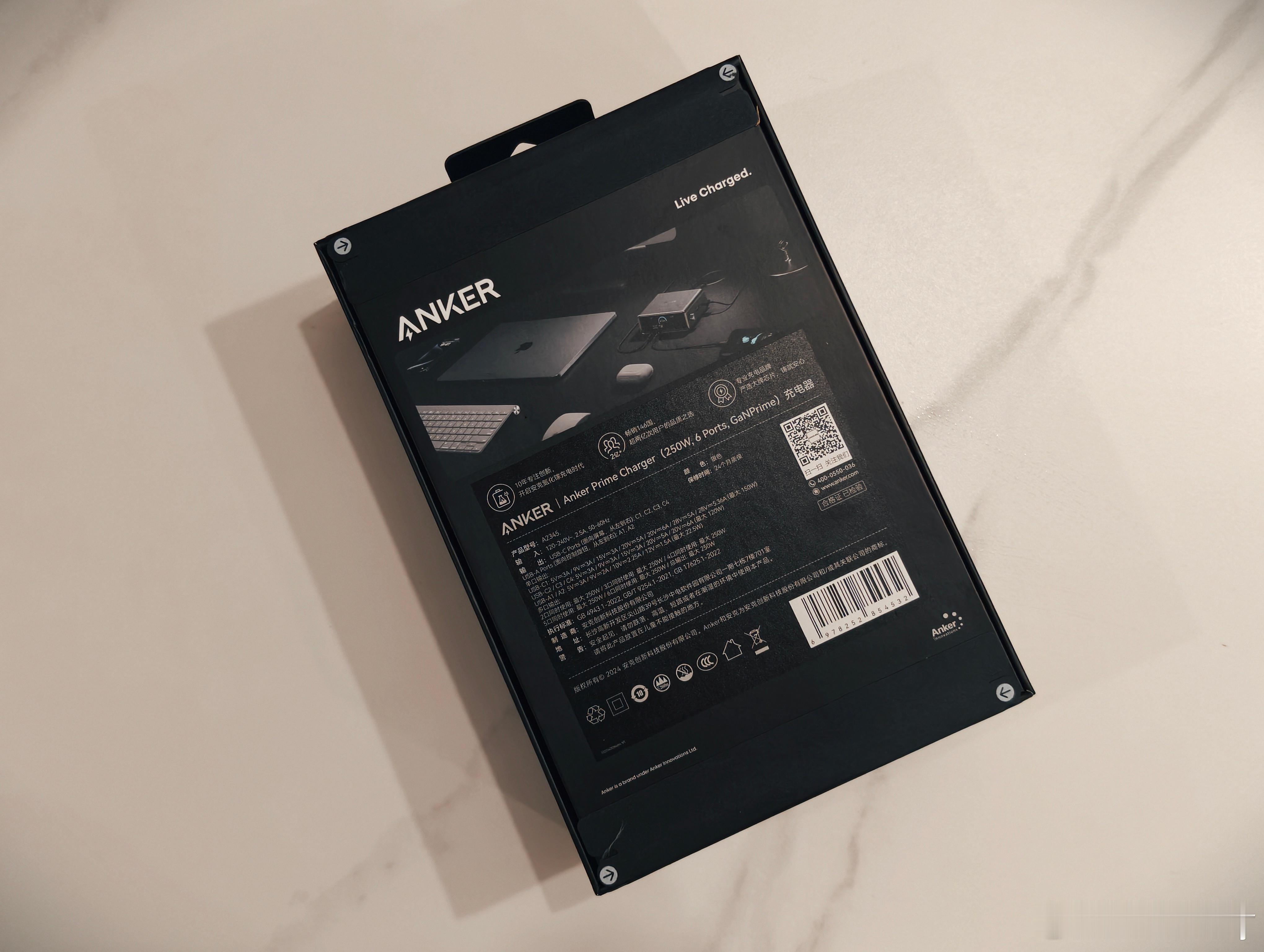 250W 的总功率,六个口随便插,手机、平板、笔记本一起上都不带喘的。