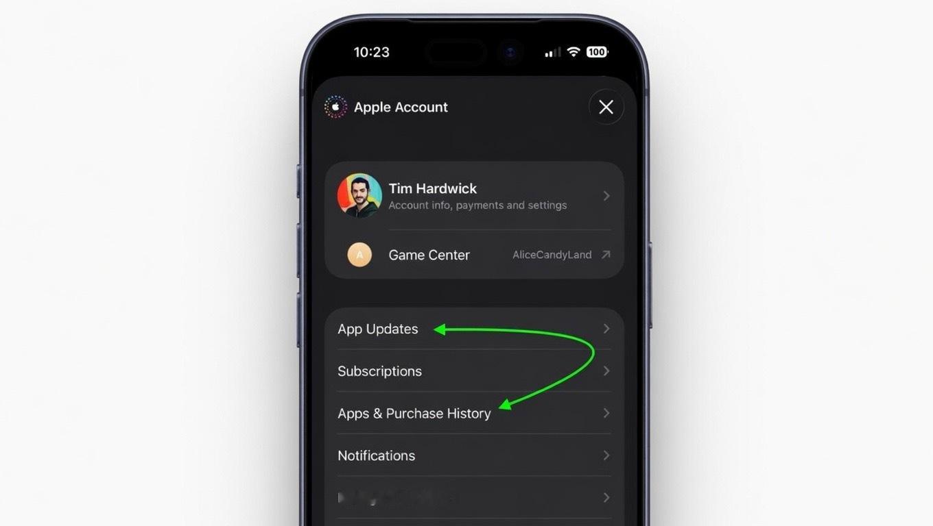 在 App Store 中,点击右上角的个人头像即可查看变化。“App 与购买记录”标签页以前位于列表顶部,现在已与“更新”标签页互换位置,后者现已更名为“App 更新”。