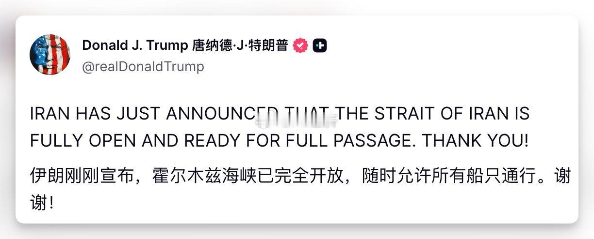特朗普:伊朗刚刚宣布,伊朗海峡(霍尔木兹海峡)已完全开放,随时允许所有船只通行。此前伊朗外长阿拉格齐宣布,根据黎巴嫩的停火协议,伊朗港口和海事组织已宣布在停火剩余期间,所有商业船只通过霍尔木兹海峡的通道将完全开放,通行路线与此前公布的完全一致。氧化菊 泼水节