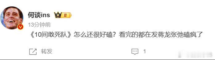 10间敢死队小驾光临北影节亮相北影节就收获满满关注,《10间敢死队》太让人期待。陈思诚这次大胆转型,用喜剧讲透活着的意义,笑泪交织后劲超大。迫不及待上映,冲进影院支持。10间敢死队北影节首映