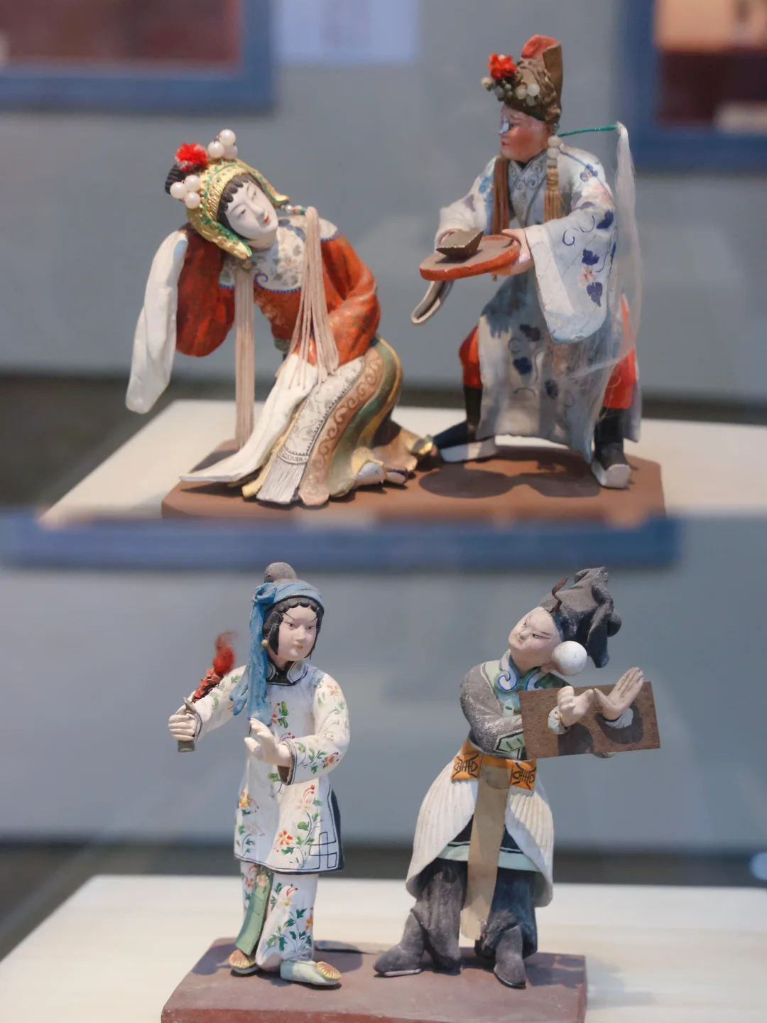 这是取自惠山脚下独有的细腻黑泥,经捏、塑、雕、绘四道古法工序,大阿福眉眼弯弯,憨态可掬🧸,是无锡人代代相传的镇宅纳福祥瑞,戏曲泥塑衣褶灵动、神态传神🎭一颦一笑藏着江南市井的烟火与诗意,方寸泥塑,尽显大俗大雅的非遗匠心