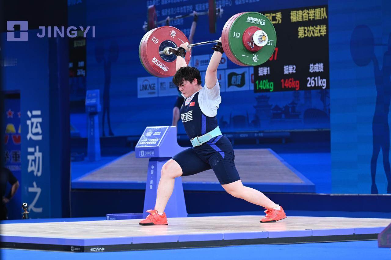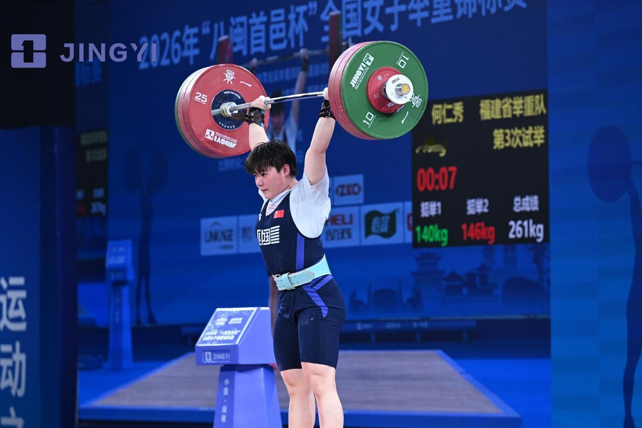 【2026年全国举重锦标赛 何仁秀包揽三金】4月17日晚,在2026年全国女子举重锦标赛女子77公斤级A组比赛中,福建选手何仁秀以抓举121公斤、挺举146公斤、总成绩267公斤包揽抓挺总三枚金牌! 四川选手杨秋霞以抓举120公斤、挺举145公斤、总成绩265公斤获得三枚银牌。江西选手敖欣以抓举114公斤、挺举130公斤、总成绩244公斤摘得抓举与总成绩两枚铜牌。广西选手庾江南凭借133公斤收获挺举铜牌。