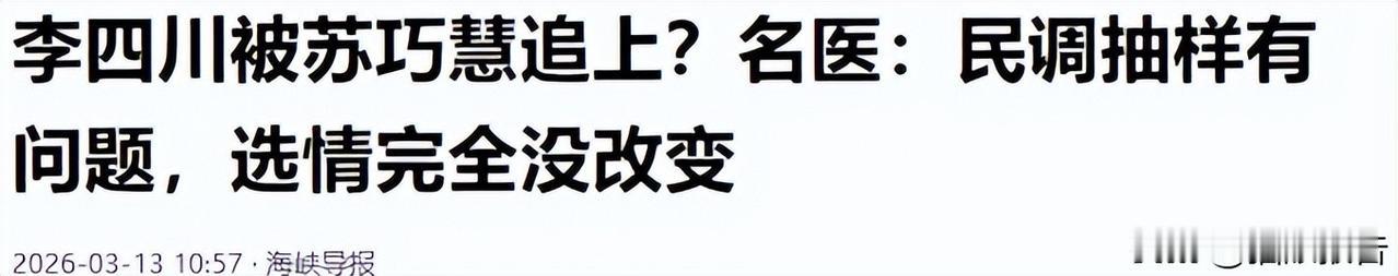 说实话,新北市长这一局,我看的不是谁赢,而是谁输不起。 李四川输不起。他是被推出来的人,台北市副市长的位子坐着舒服,但国民党没人了,他得上。输了不是他的错,但背锅的是他。 苏巧慧输不起。她爸苏贞昌的招牌,不能在她手里砸了。她准备了五百多天,跑行程、挂看板、拉议员,比谁都积极。要是这样还输,那就不只是她个人的事了。 最输不起的,是郑丽文。 她刚当上国民党主席,位子还没坐热。党内本来就有不少人服她——侯友宜那边的心结没解开,地方派系也盯着她。她把所有筹码都押在蓝白合上,要是这一局在她手里崩了,第一个跳出来要她下台的,就是自己人。 离黄国昌说的4月底,只剩两个礼拜了。 黄国昌自己说了,跟李四川聊得不错,“4月底前一定给答案”。两个人前阵子还碰了面,谈了一个小时,出来都说“很顺利”。 但顺利归顺利,民调怎么做、谁出线、另一家怎么退——这些细节,全压在最后这两周。 最新的民调很有意思。 《美丽岛电子报》4月13号出的数字:李四川35.5%,苏巧慧34.5%,差1个百分点。 1%。 三百万人的城市,胜负可能就在这1%里。 而且还有一个数字更值得看:苏巧慧的“适任度”是43.5%,李四川是41.5%。但仔细拆开看,觉得苏巧慧“很不适合”的人,有13.7%;觉得李四川“很不适合”的,只有7%出头。 说白了,讨厌苏巧慧的人,比讨厌李四川的多一倍。 这对她来说是个麻烦。中间选民那一块,她得花更多力气去拉。 蓝白合不合,数据已经算得很清楚了。 要是蓝白各选各的,三脚督下去,苏巧慧35.7%,李四川32.1%,差3.6个百分点。 要是蓝白合了,一起推李四川,他39.1%,苏巧慧38.0%,反过来赢1.1个百分点。 分则两败,合则小胜。这笔账谁都会算。 黄国昌也不是没有自己的打算。他被两年条款卡着,明年1月就得离开立法院。对他来说,拿到行政权比什么都重要。柯文哲说过一句话:民众党只要黄国昌选到底,李四川就挂了。反过来也一样,国民党没有民众党帮忙辅选,也很难赢。 所以这次蓝白学聪明了。 2024年那次是因为“让3%”算不清,最后破局。这次他们干脆不公布民调数字,只说谁赢。手机和市话比例定好3比7,只做对比民调,4月底前做完,只公布胜出者,不公布具体数字。 这样能防民进党支持者故意灌票。但也留下一个问题:不公布数字的结果,两边支持者信吗? 吴子嘉倒是很乐观。他说这次蓝白会顺利整合,李四川出线,黄国昌会有风度地配合。 但真正决定胜负的,可能不是黄国昌,而是侯友宜。 侯友宜在新北的支持度有六成。他要是全力帮李四川辅选,李四川能从35%冲到将近60%,直接碾压。他要是冷处理,李四川就很难了。 侯友宜4月16号说了句话:“对李四川非常有信心,希望越快越好。” 话是好话,但够不够用,还得看接下来两周他会不会真的动起来。 说到底,新北这一局,拼的不是谁更厉害,而是谁更输不起。 郑丽文输不起——她需要一场胜仗来证明自己坐得住这个位子。 李四川输不起——他是被推出来的“救火队员”,输了不是他的错,但大家会记住是他输的。 苏巧慧也输不起——她准备了那么久,背负着苏贞昌的招牌,输了就是“民进党在新北扶不起来”。 三个输不起的人,加上一个手握六成支持度但还没完全表态的侯友宜,再加上一个需要在4月底前做决定的黄国昌。 还剩两周。 你觉得蓝白这次能谈成吗?新北这一局,你是看好李四川的务实,还是苏巧慧的积极?评论区聊聊。