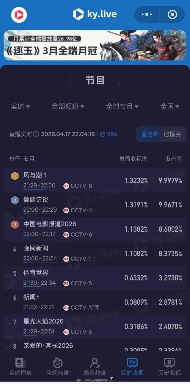 任嘉伦《风与潮》不愧是拉升之王,央八次黄档原地起飞,直接登顶!