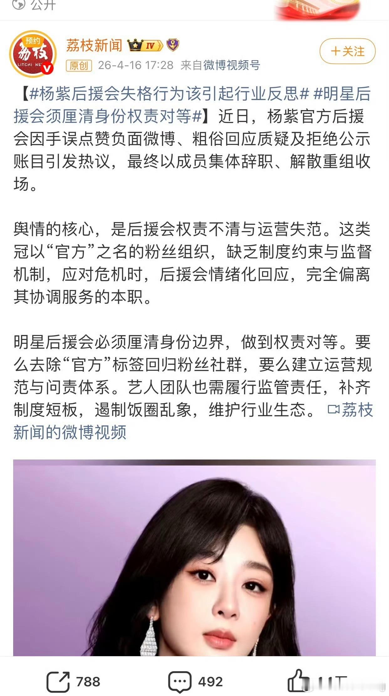 杨紫后援会失格行为该引起行业反思紫姐后援会前两天搞的那些事,粗鲁发言等,被称为失格行为不过,明星的官方后援会代表粉圈门面诶,还是得谨言慎行吧