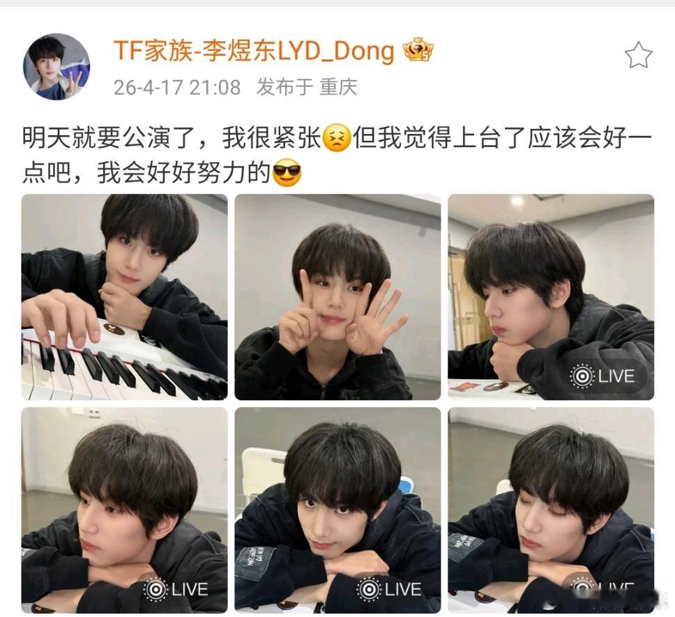 李煜东说公演会好好努力的李煜东见面会一切顺利李煜东黑衣6宫格李煜东明天公演很紧张