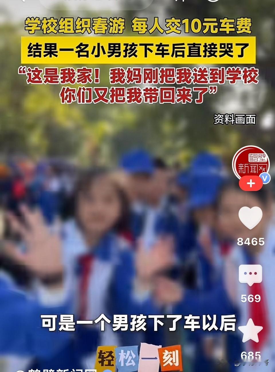 笑不活了!学校组织春游到农村去看油菜花,到了目的地学生们都很兴奋,可是一个男孩却哇的一声哭了起来。老师一问原因,学生的回答把大家都逗乐了! 学校要组织学生开展春游活动,每个人收取10块钱的车费。 学生们听到消息后都很兴奋,放学回家后就开始准备第二天的春游装备。 第二天学生们早早就来到学校在老师的带领下登上客车去乡下去参观油菜花。 很快车就拉着学生们到了目的地,一处村庄外一大片盛开的油菜花田。 学生们下车后望着成片的油菜花田都很开心兴奋,玩耍着拍照着…… 可是一个小男孩下车后却站在油菜地旁哇的一声哭了起来。 站在一旁的老师很是诧异,急忙上前询问情况,小男孩哭着说道:这是我家,那油菜花还是我和爷爷一起种的呢!我妈刚把我送到学校,你们又把我送回来了! 此事发生后也引发了网友热议,有的网友说,我也真的经历过,我老家在山沟沟里,只有5户人家,小学三年级时老师说明天春游然后回来写作文,兴奋的一晚上没睡第二天一早到学校,然后就来到我家后山,重点是我爸妈和我姐还在那开荒,我姐还喊我过去和她一起捡树根。 也有的说,我儿子经历过,在我家房子后面野炊,结束的时候还跟着大部队去学校,他爷爷在车后面跟到学校再接回来。 还有的说,把娃的十块钱退给人家吧。太残暴了。 也还有的说,我小时候也是,去春游,老师把我们带到我们村后门山。然后我就回家了,把老师吓死了。以为我丢了呢。 这可能是男孩最惨的一次经历啦!满怀期待却来到了自己家里还是自己种下的。 我想说的是,别哭了孩子,应该敞开胸怀欢迎大家来到自己种的油菜花田来参观。