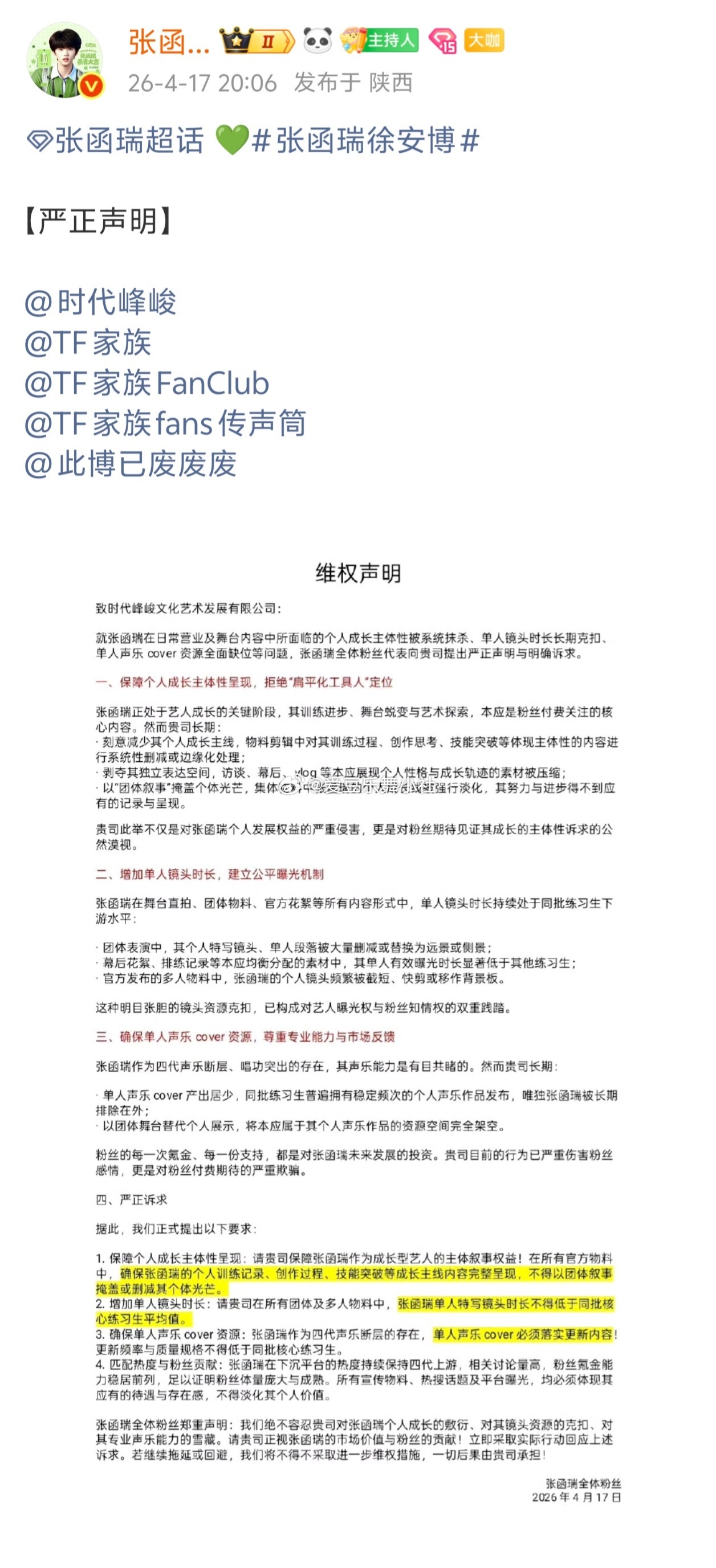 左奇函陈浚铭张函瑞陈奕恒粉丝维权👊👊