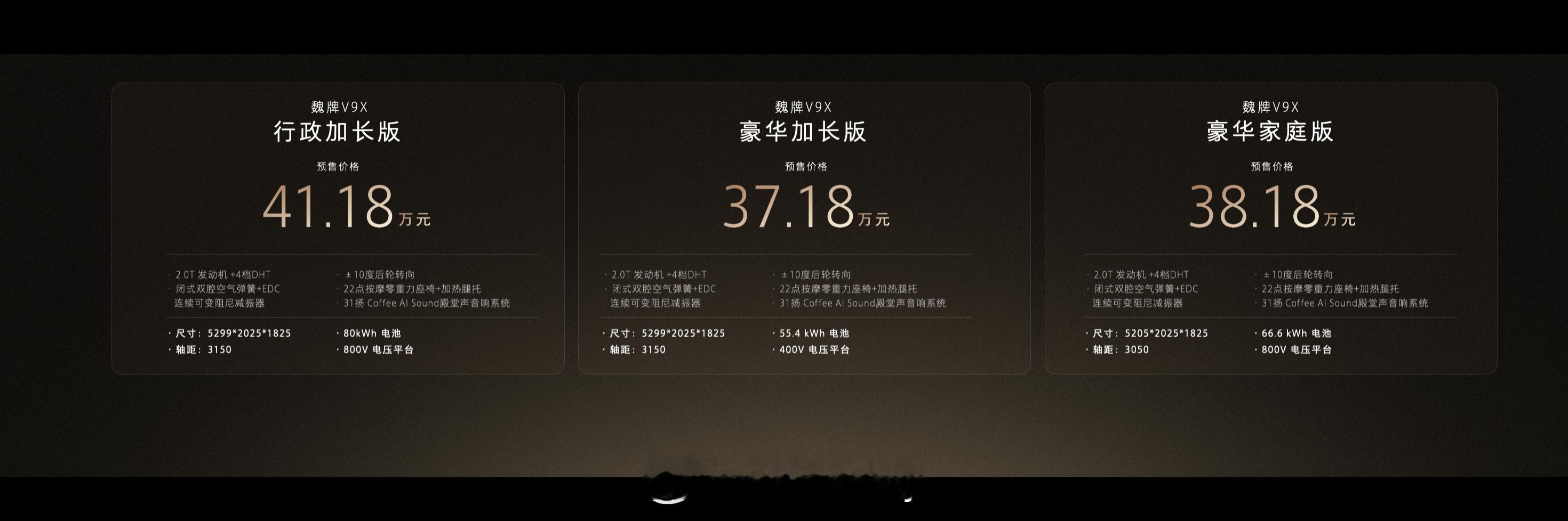 先说大家最关心的价格吧,预售价格37.18万元起,分为行政加长版、豪华加长版和豪华家庭版,SKU清晰,根据自己的需要选就是了。