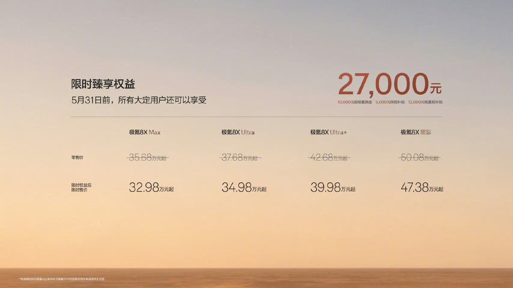 极氪8X上市限时售价32.98万元起极氪8X29分钟大定破万现在的情况是这样的,我手里头还有一张2万元的千里浩瀚券,加上我小定的优惠7000,相当于30.28可以入手这新公路之王了…