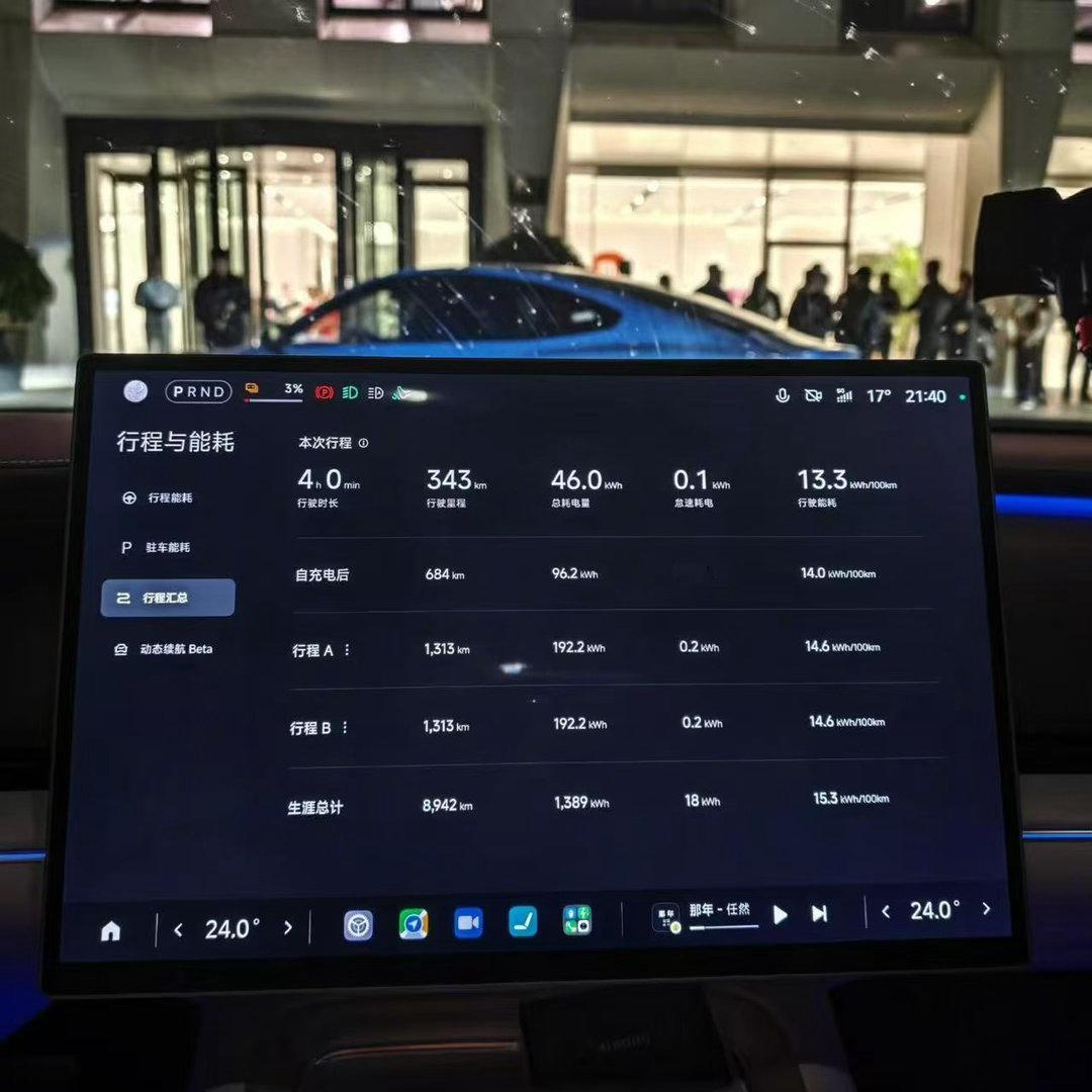 新SU7 Pro 赤霞红,从北京到上海,满电出发,120时速,全程1313公里,中间充电一次。