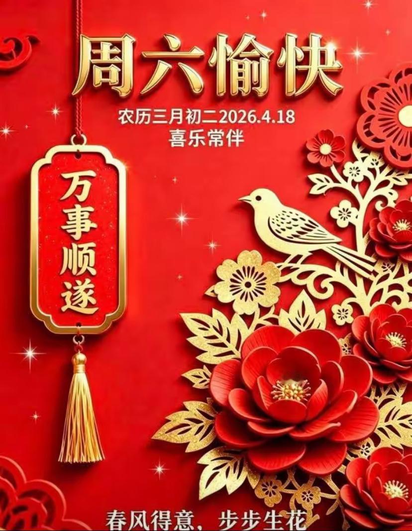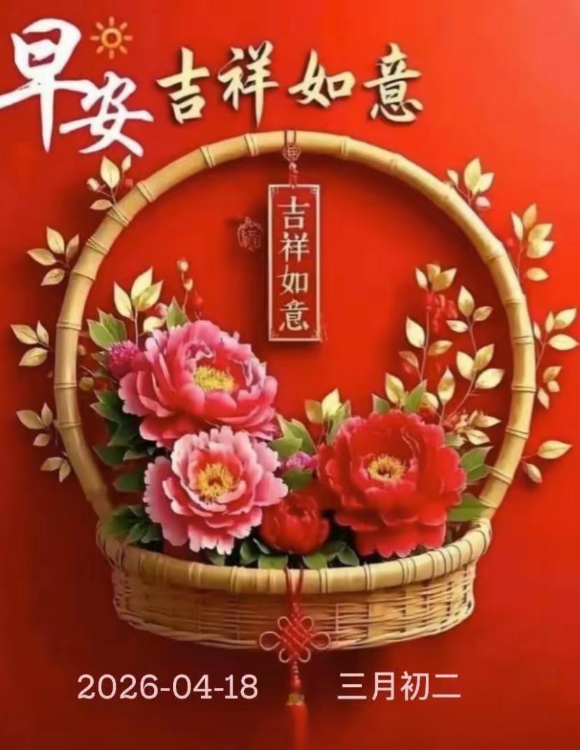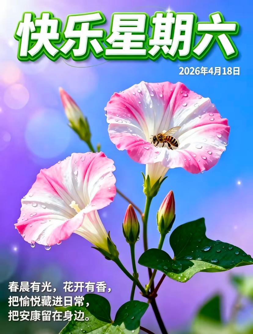 🌺☘️2026./4.18.周末春晨祝福☘️🌺 ☘️☀️新的一天,新的清晨,带着阳光与祝福蹁跹而至。春风温柔,暖意盈,愿这份清晨的问候,能给你带来一份舒心与力量。生活平凡,却知足常乐,愿你心怀美好,向阳而行,不慌不忙过日子,生治简单便是福,心平气和好运来。愿一天忙碌皆得以欢喜,所有疲惫都被治愈,所有温情都如期相逄,平安健康常相伴,笑容始终灿烂如初。