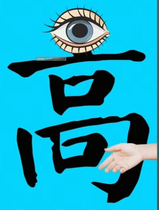 〔看图猜成语〕 图中画面真有趣; 一个高字不一般; 点划就用眼睛整; 一只手在底下显; 猜个成语你能行。