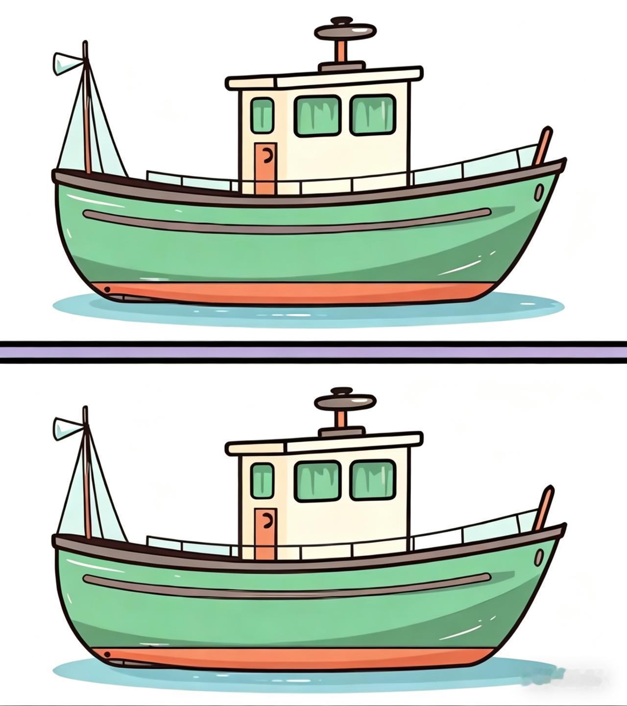 看似容易,实则难寻差异 两艘帆船于大海中航行,乍看仅有简单的船身与船上物品,实则暗藏1处不同。你能否在10秒钟内将其找出?
