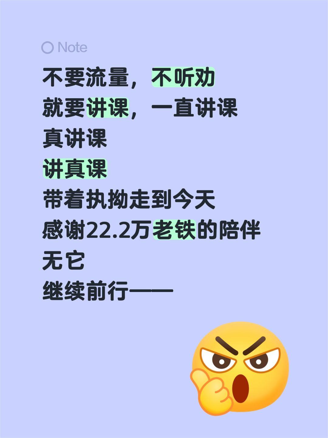 不要流量,不听劝 就要讲课,一直讲课 真讲课 讲真课 带着执拗走到今天 感谢22.2万老铁的陪伴 无它 继续前行——