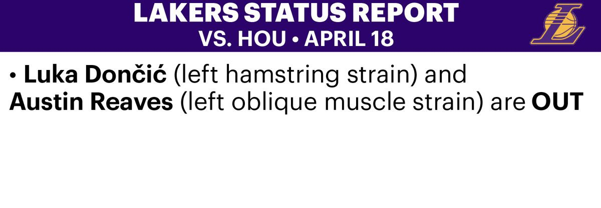 根据最新的伤病报告及雷迪克采访透露:“东契奇、里夫斯确定缺席湖人火箭G1。”