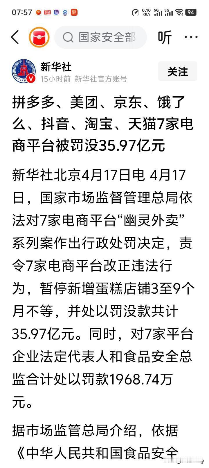 今天看到一条消息, 国家市场监督总局,对七家电商平台“幽灵外卖”系列案作出行政处罚,真是大快人心啊! 食品安全,是件大事,关乎人民群众的身体健康,只有大力进行监管,才能保护我们的健康权不被侵害。