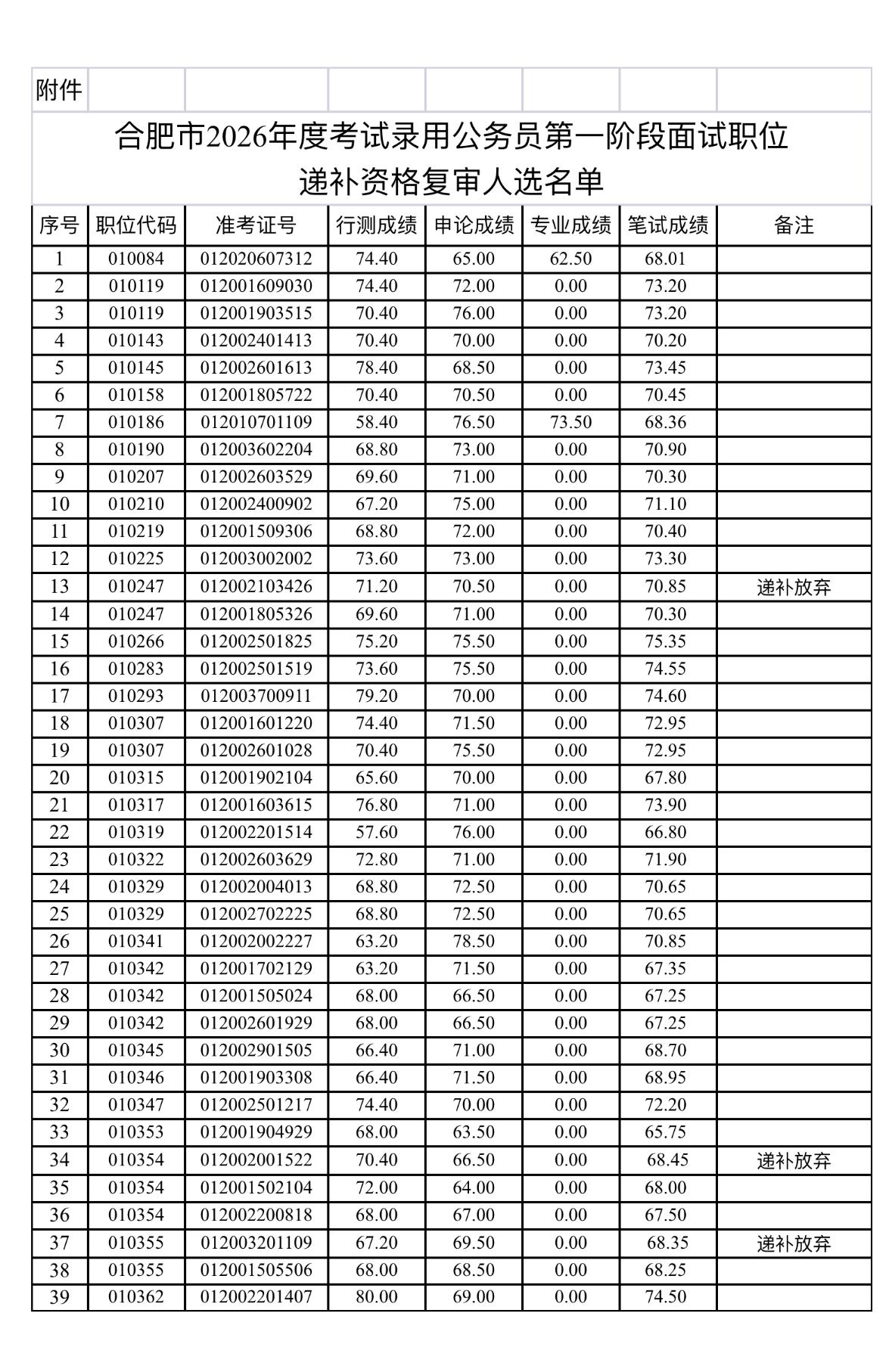 速看!合肥市考公务员递补资格复审名单 合肥市公务员局发布2026年度考试录用公务员第一阶段面试职位递补资格复审通知 发布单位:合肥市公务员局 通知信息: ✅ 递补资格复审人选名单已公布 ✅ 资格复审所需资料详见合肥先锋网 ✅ 未按时参加视为自动放弃 重要日期: 2026年4月17日发布通知,具体复审时间以招录机关通知为准 后续提醒: 递补入围的同学请及时准备复审材料,按时参加资格复审 省考 公务员考试 资格复审 合肥省考 安徽事业单位 考公 考编