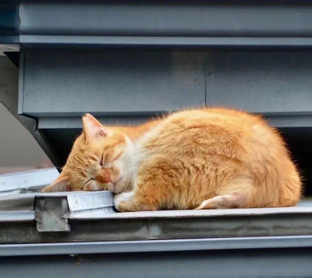 早晨去银行取钱,门口趴着一只狸花猫,我用脚轻轻把它往一旁踢了踢,没想到猫咪顺势躺