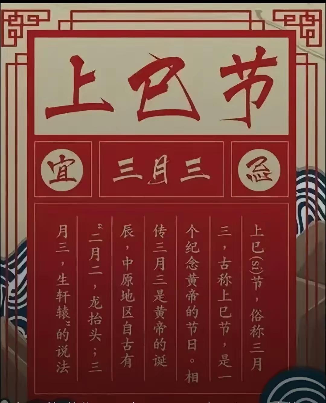 明天是4月19日(农历三月初三),中国传统的民俗节日上已节,这一天是道教真武大帝诞辰、王母娘娘蟠桃会、轩辕黄帝圣诞、葛仙翁飞升、太乙救苦天尊下降、北极北斗下降、翊圣真君下降、五方雷神下降日,吉祥殊胜!