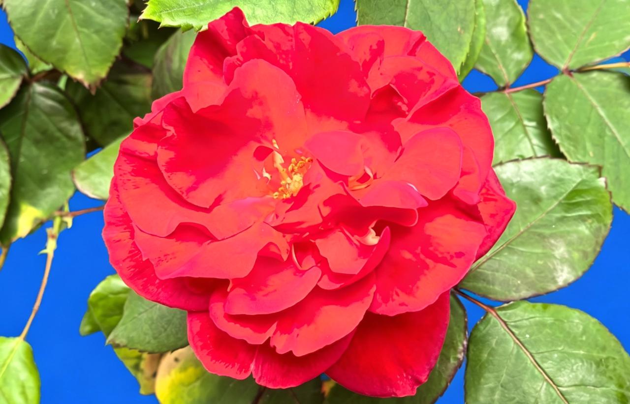 一朵大黄花在蓝天下盛开。