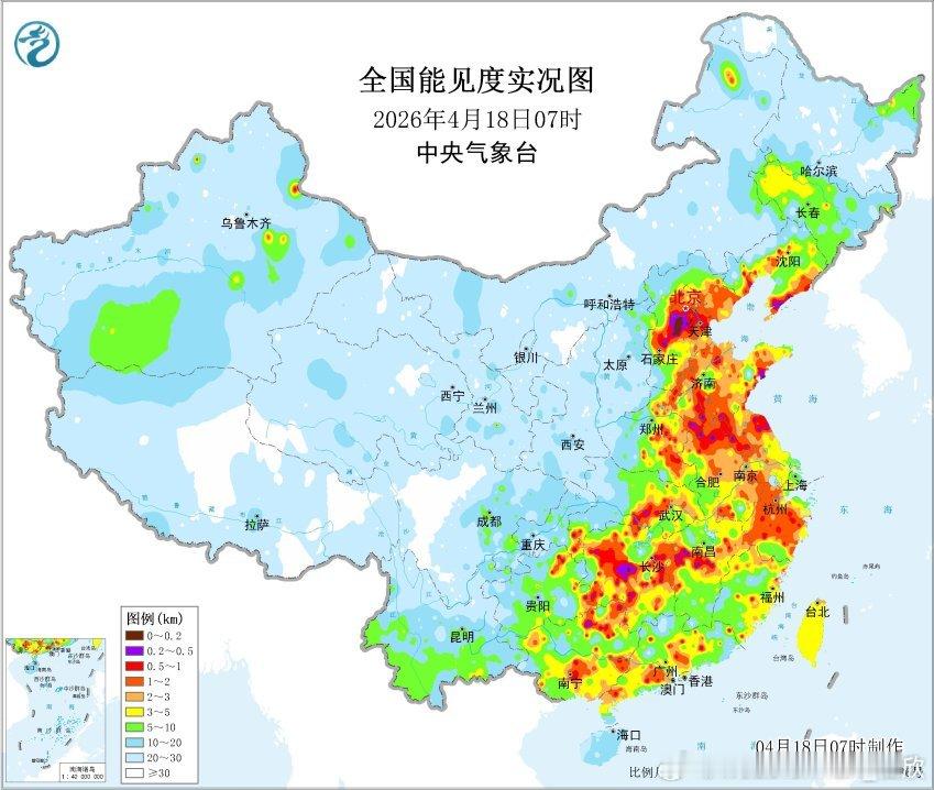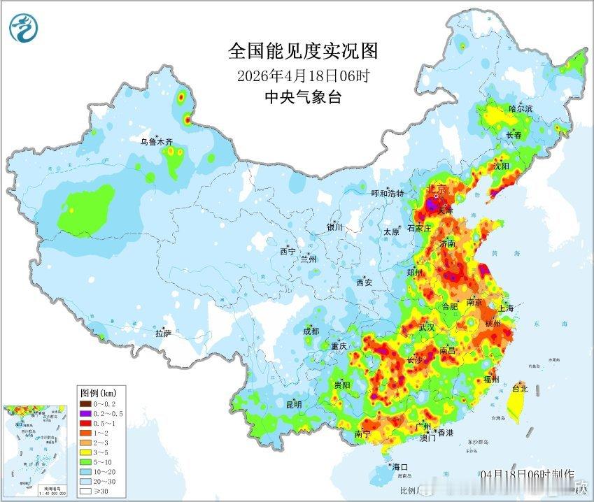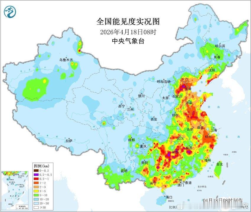 【大雾】今晨中东部多地出现大雾。河北保定、安徽宿州、湖北荆州、江西新干、湖南衡阳、广西融水等站点出现了能见度不足200米的强浓雾。目前有些站点能见度已经开始好转,上午雾会逐渐散去。