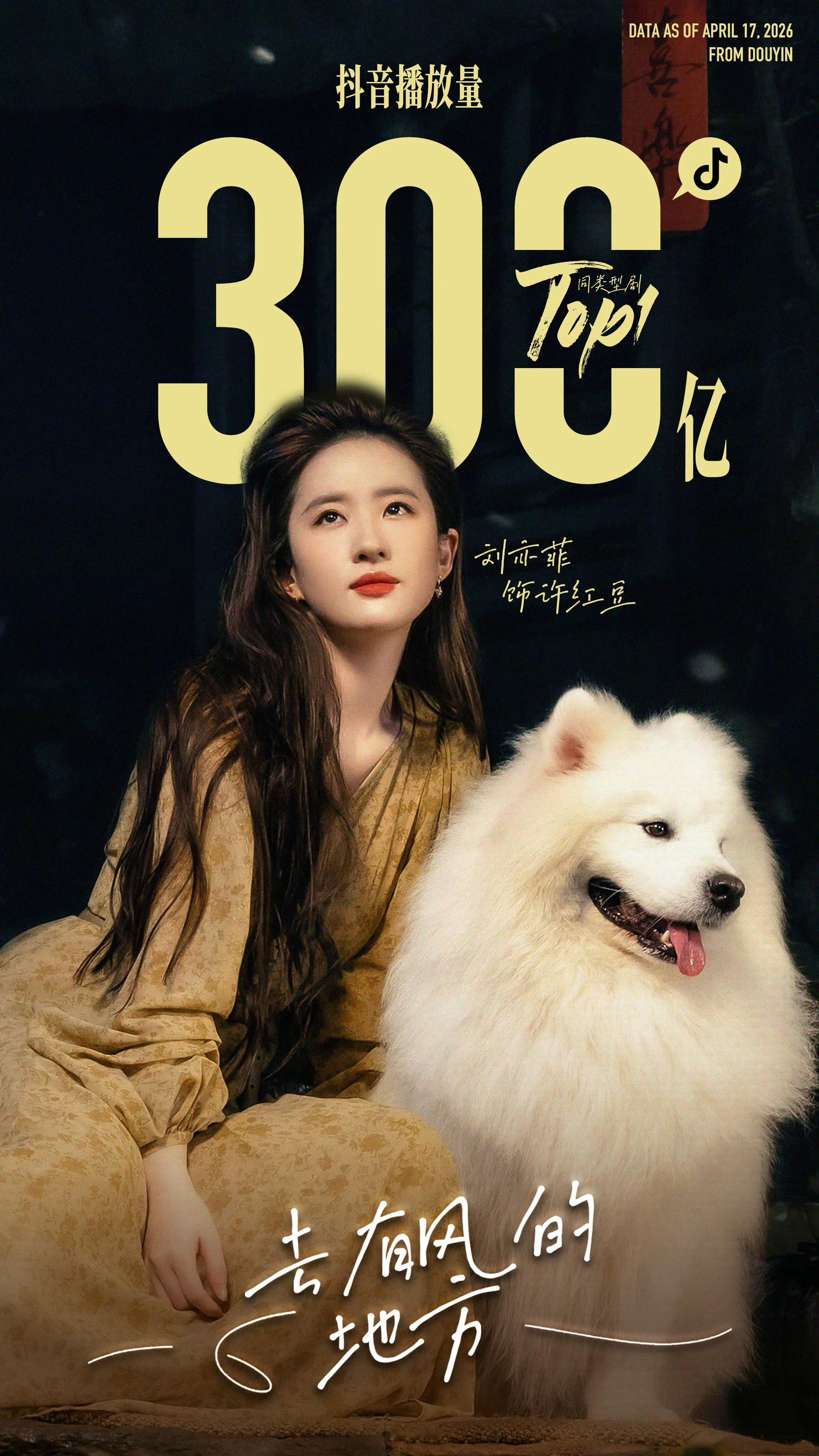 刘亦菲一番主演的《去有风的地方》抖’音主话题播放量破300亿,在国产田园题材剧中断层领先