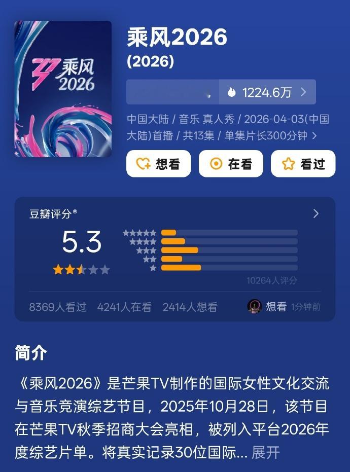 《乘风2026》豆瓣开分5.3分,高了还是低了。