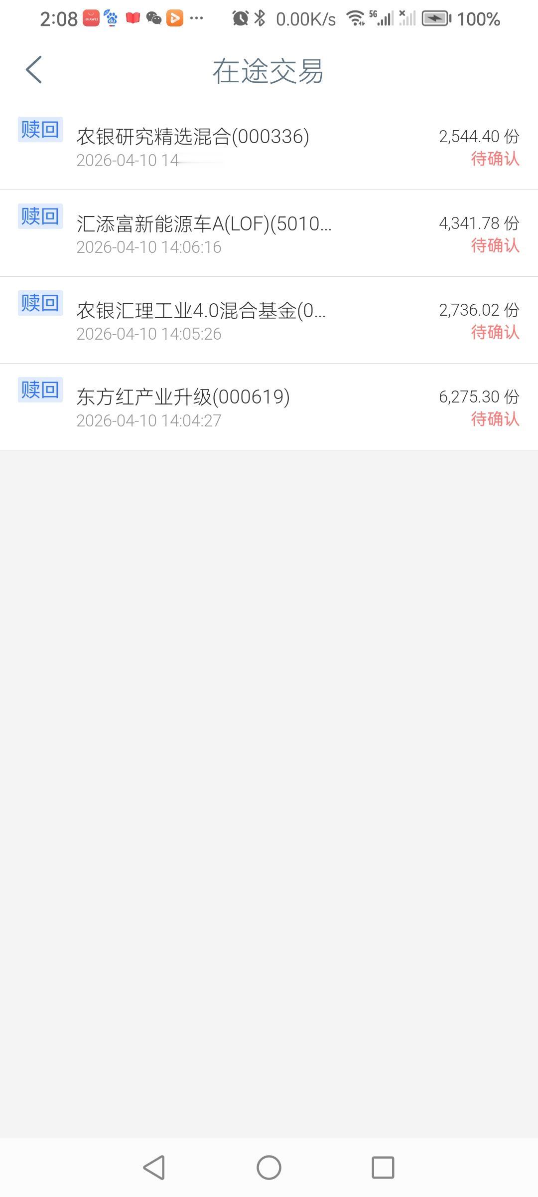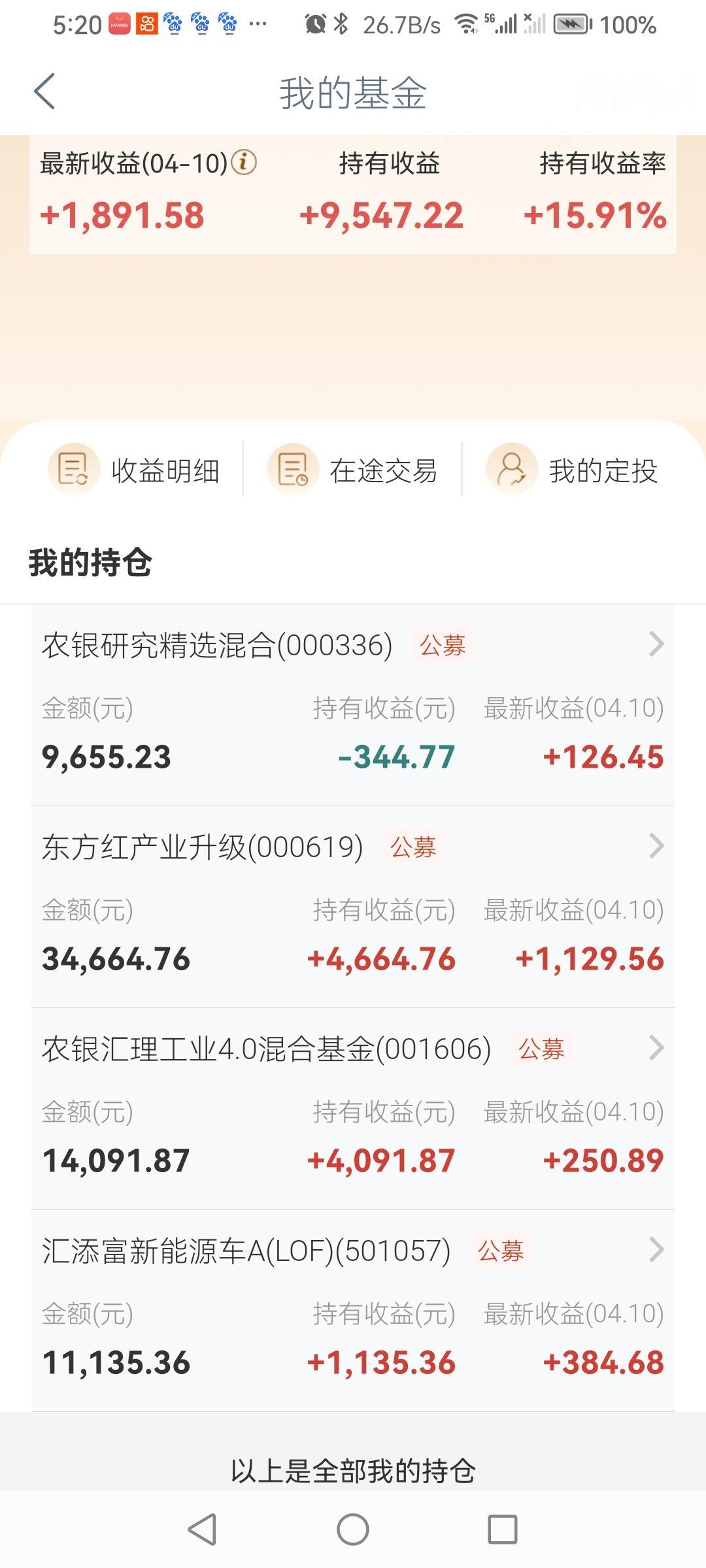 我的基金。4月10日(星期五)大盘普涨,经历过几次周五拉升与周一的大幅下调,终于把还有一只割肉也全抛了。 岂能料到4月13—17日股市行情一直向好。“股市有风险,投资需谨慎”!(图片来源:老山兰截屏)