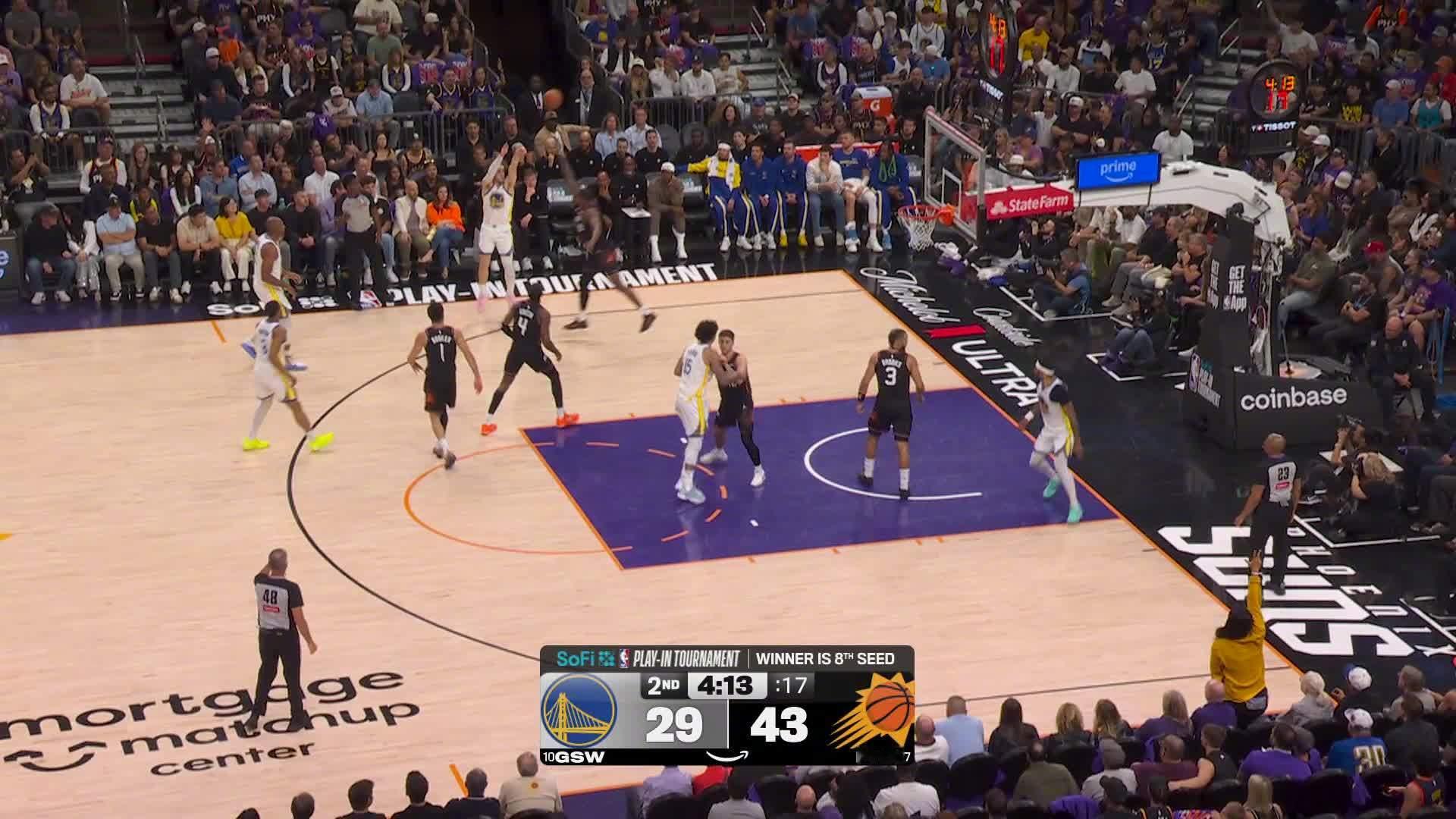 波齐姆斯基三分入账!勇士33:43太阳。勇士vs太阳