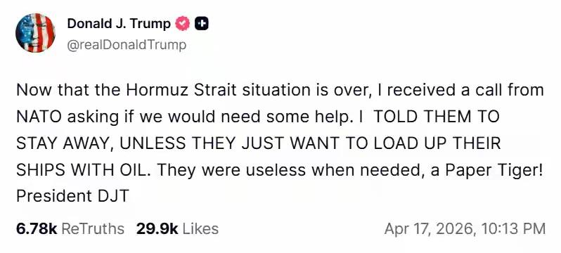 特朗普说,欧洲是纸老虎!毛主席的一句“纸老虎”,世界竞相引用! 特朗普愤怒地说:“我让他们滚远点,除非他们只是想把船装满石油。需要他们的时候却毫无用处,就是纸老虎(paper tiger)!” 最近北约打电话询问美国需要什么帮助,特朗普很生气!说需要他们的时候,他们都不帮忙,毫无用处,他们就是纸老虎,这一句经典名言,可是出自于中国伟大的毛主席!现在却成了特朗普经典用词!中国的伟大确实值得称赞!这当年说的是美国是纸老虎,现在美国人却把这句话拿去说欧洲是纸老虎!这个世界没有什么不可能的,一切皆有可能!