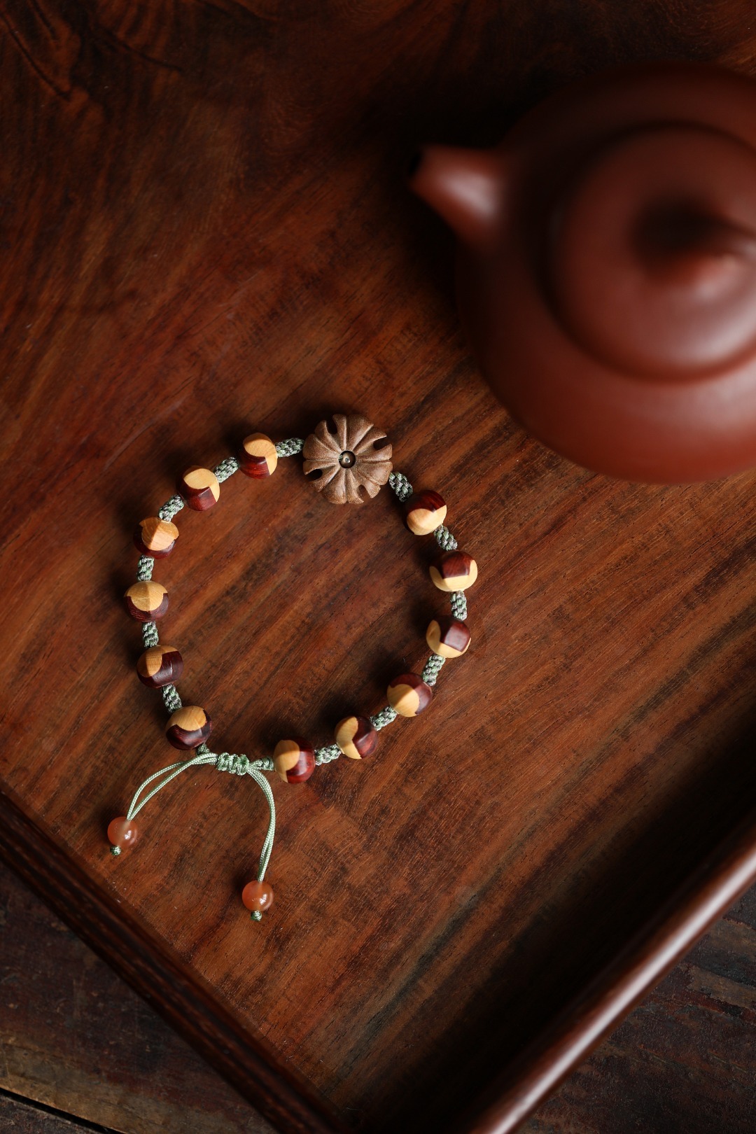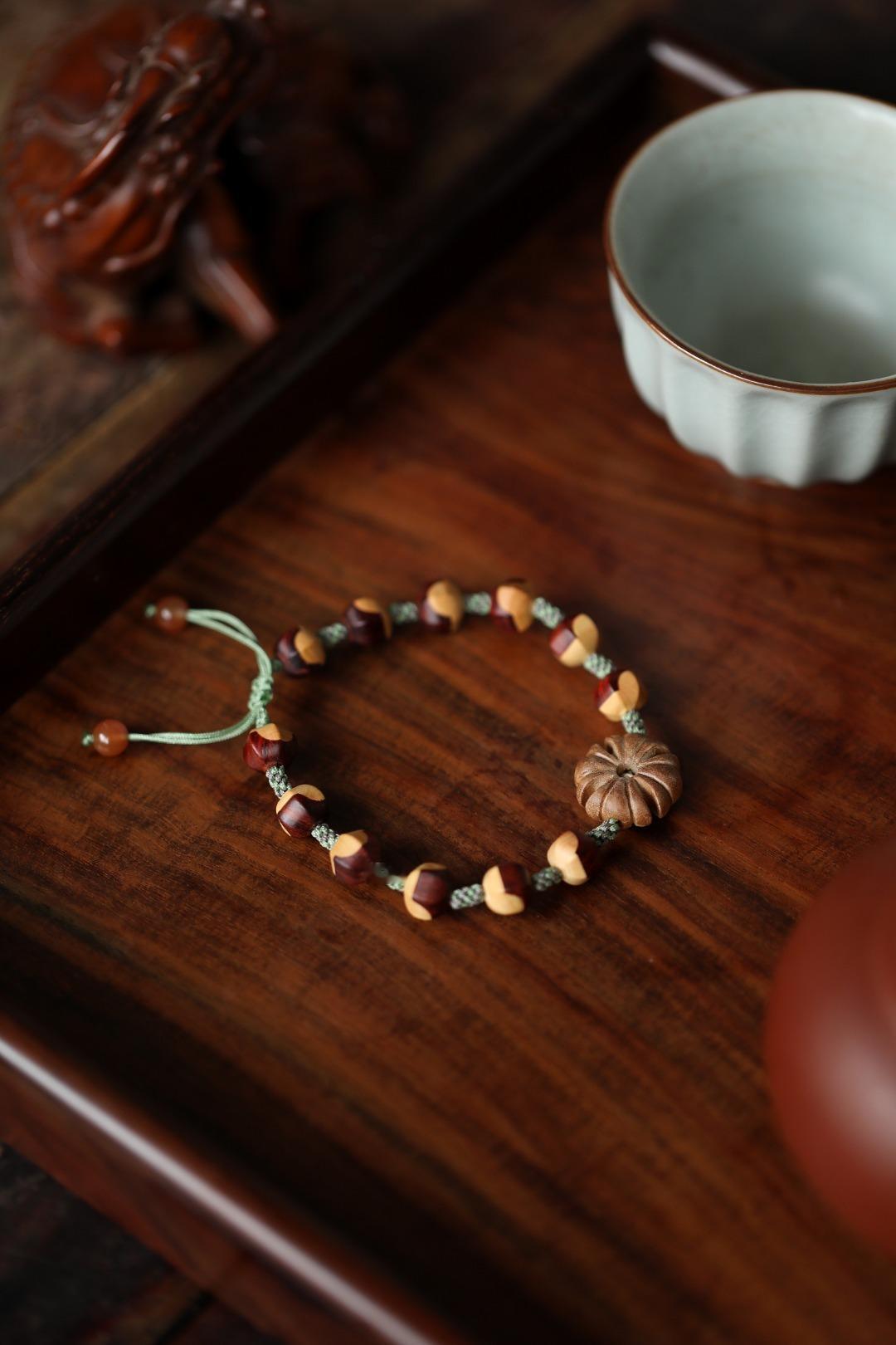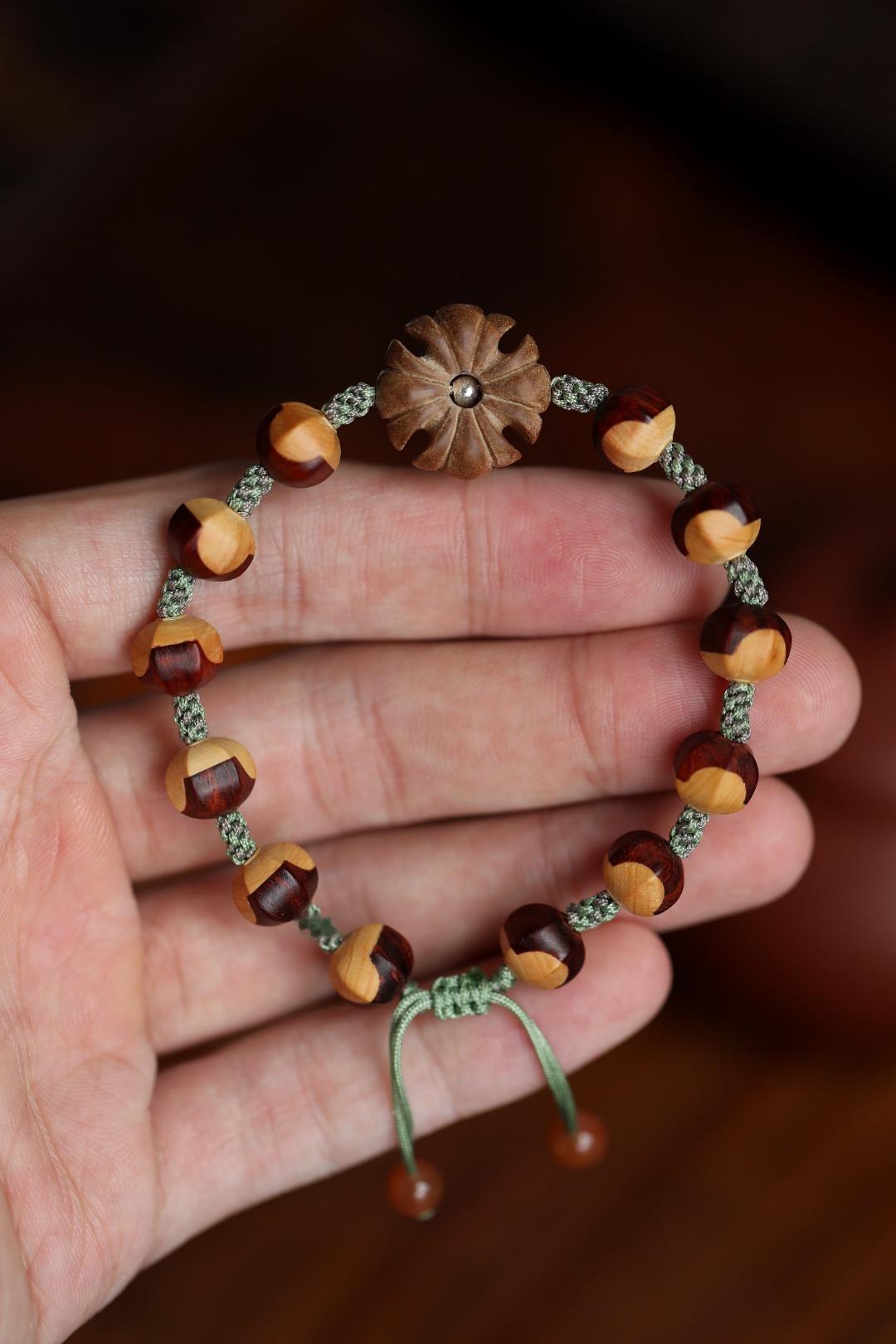 紫檀镶嵌黄杨木设计,柔和温婉,灵俏动人,佩戴于手,别致风雅。