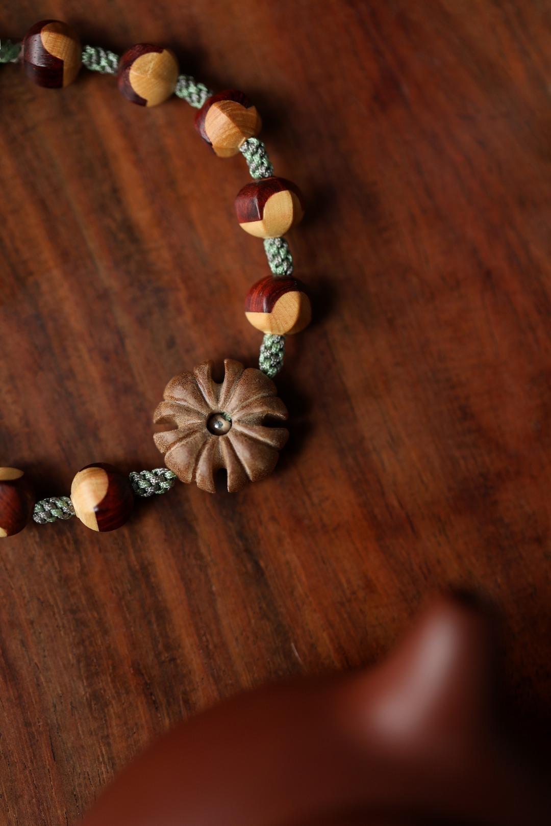 紫檀嵌黄杨木原创【凌梦】榫卯珠