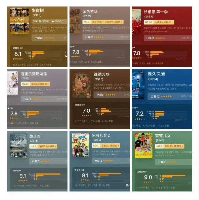 杨紫剧集豆瓣评分都在7分以上