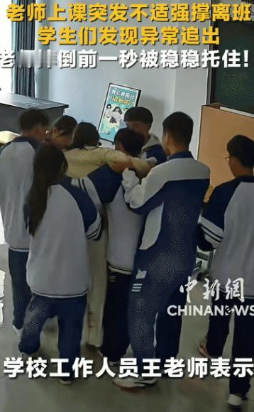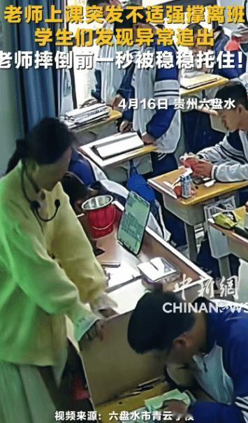 贵州一中学老师,在课堂上讲课时突然觉得身体不舒服,为了不影响学生们学习,老师则强撑着离开了教室,学生们发现异常后,第一时间追出,并在老师摔倒前一秒,合力将其稳稳托住的暖心一幕,让不少网友看得感动泪目了! 近日,贵州六盘水青云学校的一则校园监控片段在网络上悄然走红,没有夸张炒作,没有刻意煽情,仅凭最真实的师生互动,打动了无数网友。 这场发生在高二六班的暖心事件,全程有监控记录、学校官方证实,所有细节真实可查,是一场老师与学生之间本能的守护与双向温暖。 事件发生在上午的英语课堂上,当事人是青云学校高二六班的英语张老师。 当天张老师因家中急事匆忙出门,未吃早饭,这成为她突发不适的根源。 起初十分钟,张老师授课状态正常,与学生有问有答,可十几分钟后,她的状态逐渐异常:脸色从红润变得苍白,声音渐渐微弱,站在讲台上身体不自觉摇晃,右手频繁扶着讲台,翻课本的动作也变得迟缓。 台下学生很快察觉到异常,常年相处让他们对老师的状态格外敏感,孩子们没有当场声张,只是悄悄交换担忧的眼神,有学生悄悄拿出水杯,准备下课递给老师。 而张老师深知高二学习任务紧张,不愿因自身状况耽误学生上课,更不想让孩子们慌乱,始终强撑着,未提及半句不适。 直到实在无法支撑,张老师才勉强稳住语气,对学生们说:“你们先自己看书,我出去一下,很快就回来。” 话语平静得几乎听不出虚弱。 说完,她扶着讲台慢慢转身,一步一步艰难走向教室门口,每一步都透着吃力,她只想找间空教室歇一歇,缓解症状后立刻回到课堂。 张老师以为自己的举动足够隐蔽,却不知转身走出教室的瞬间,班里一名最先察觉异常的男生已悄悄跟了上去。男生担心老师出事,又怕打扰到她,便轻手轻脚地跟在身后,保持着不远的距离。 紧接着,其他八名学生也陆续起身,悄悄跟了出去,全程无人喧哗,只是安静注视着老师的背影。 此时张老师的低血糖症状愈发严重,眼前发黑、意识模糊,只能靠着走廊墙壁勉强挪动,好几次差点撞到课桌,只能伸手扶住桌子稳住身体。 当她走到另一间空教室门口,准备推门时,双腿突然一软,整个人失去支撑,朝着地面直直倒了下去。 千钧一发之际,跟在身后的九名学生立刻冲了上去,最前面的两名学生一左一右稳稳托住张老师的身体,后面的学生迅速围上来,有人扶胳膊、有人托后背,还有人赶紧搬来凳子,小心翼翼将她扶坐下,全程未让她受到丝毫磕碰。 事后通过监控确认,参与救助的正是这九名高二学生。 他们面对突发情况毫无慌乱,自发分工:两人留在原地照料张老师,三人飞快跑去通知班主任,四人分别去买含糖零食、找校医,动作有条不紊,比许多成年人还要沉稳。 高二六班班主任陈鑫老师接到通知后,立刻赶到现场,得知张老师是低血糖发作,迅速跑去小卖部买来糖块、面包和温水,让她及时补充体力。 万幸的是,张老师食用后十几分钟便恢复意识,脸色也渐渐红润起来。 张老师后续回忆,当时完全失去意识,不知自己如何走到空教室门口,醒来时就看到一群学生围着自己,满眼担忧,那一刻心里又暖又酸,从未想过学生们会如此懂事贴心。 据悉,张老师平时格外负责,常利用课余时间为基础薄弱的学生补课,十分受学生喜爱。 当天下午,稍作恢复的张老师按时前往另一个班级授课,推开门的瞬间彻底愣住:讲台上整齐堆着小面包、饼干、牛奶等零食,还有几张手写纸条,写着“老师记得吃早饭”“我们会认真学习”,都是学生们课间悄悄放置的。 学校得知此事后,高度肯定九名学生的举动,决定在下周一升旗仪式上,将他们请到全校师生面前公开表扬,颁发“暖心少年”荣誉证书,号召全校同学学习。 这九名学生表示,当时没想过要表扬,只是看到老师不舒服,下意识想帮忙。 事件传开后,网友评论一边倒好评:有人说这是最真实的师生情,全是本能守护。 有人感慨这是老师与学生的双向奔赴;还有人直言,仅凭这份善良,这些孩子就值得点赞。 无独有偶,类似暖心事件在各地校园时有发生。 上个月,贵州六盘水另一所中学,一位语文老师早课突发晕厥,学生迅速冲上前托住并通知校医。 山东临朐县新岳中学,一位班主任悉心照料学生,学生们用书信、手工作品回馈,尽显师生温情。 这场发生在青云学校的小事,没有轰轰烈烈的剧情,却用真实细节诠释了师生温暖。 张老师的责任坚守,九名学生的善良勇敢,没有剧本、没有摆拍,只是最朴素的守护与回馈,就足以打动无数人,也让人们看到,最真挚的情感,往往藏在平凡日常里。 如果各位看官老爷们已经选择阅读了此文,麻烦您点一下关注,既方便您进行讨论和分享,又能带来不一样的参与感,感谢各位看官老爷们的支持!