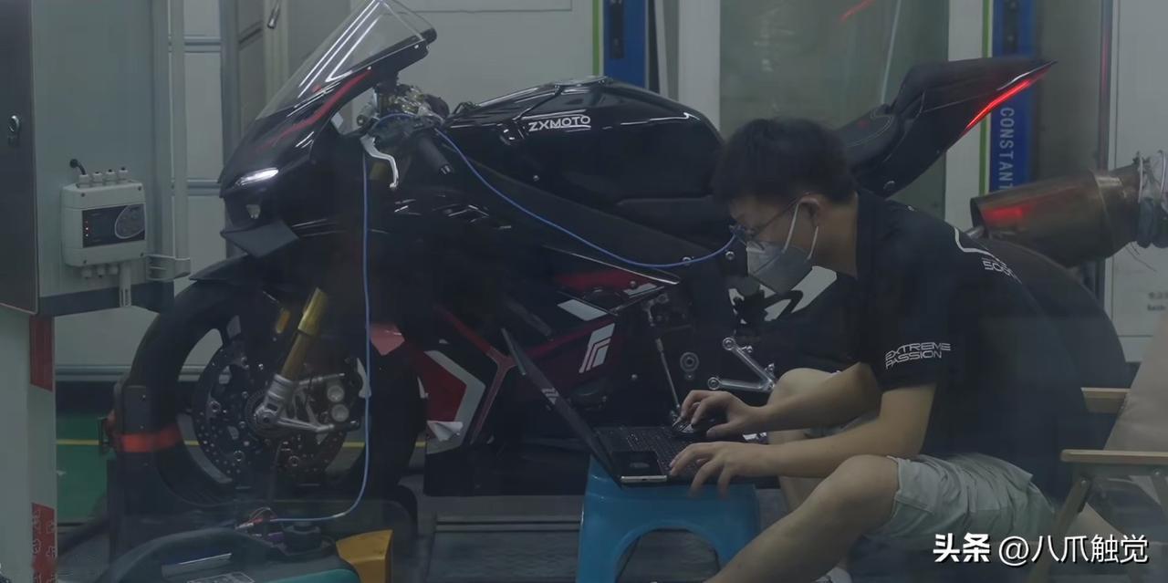 穿过一条昏暗的过道,走进张雪机车的实验室,张雪说:一个房间空调的成本要100万,共4个房间,单这个发动机测试实验室建造成本就花了1000万,一款发动机在台架上要拉200小时,做耐久性、动力曲线测试,1小时要耗掉20升汽油。 指着正在做整车测试的820RR,张雪自信满满地说:这是目前国内动率最高的,150匹马力,在WSBK上,他们全部干不过我们。 张雪机车夺冠,并非碰巧,也是踏踏实实干出来的。