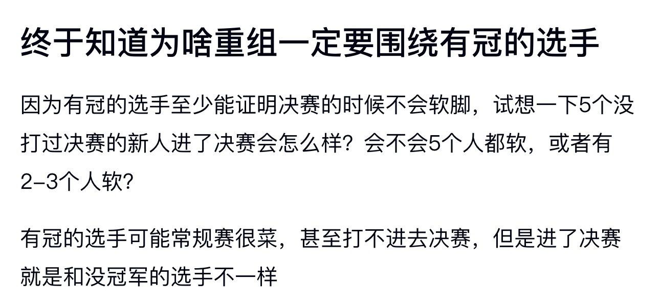 不是要围绕有冠的选手重组队伍,而是应该围绕领袖型选手重组