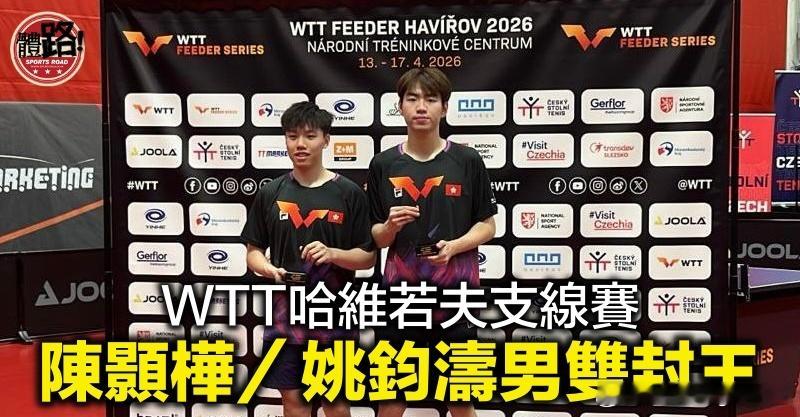 【体路专讯】港乒世大金牌组合陈颢桦/姚钧涛勇不可挡,周五(17日)在WTT支线赛哈维若夫站男双决赛以直落3局11:7、11:5、14:12轻取斯洛伐克的Samuel Palusek/Damian Floro,勇夺冠军,为征战世界团体锦标赛壮行色。