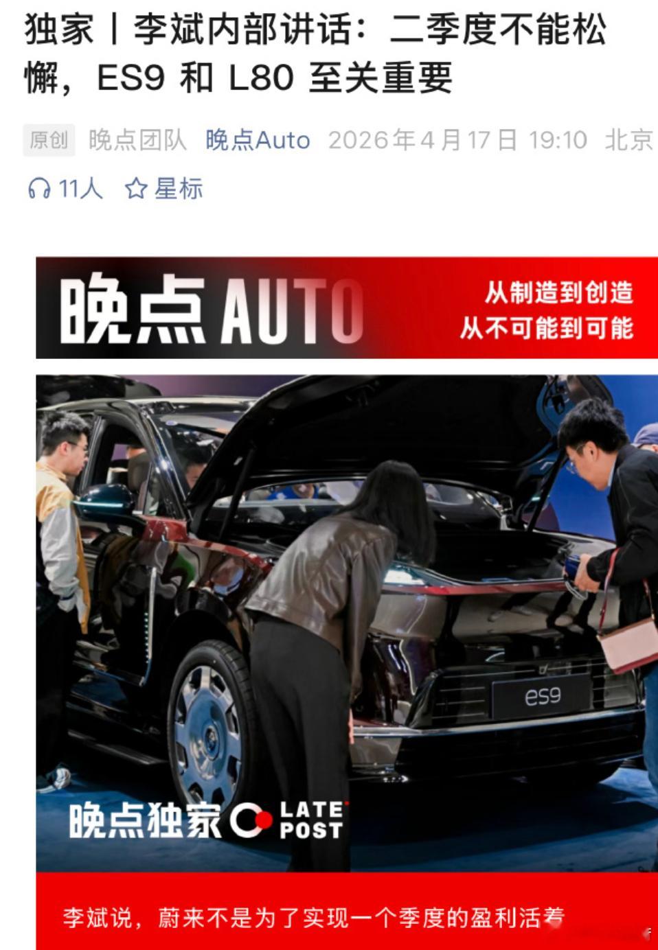 李斌最新的内部讲话,谈到了3个地方。1,是蔚来ES9订单不错,重点是拉动了ES8的订单量;2,是乐道L80的重要性,6月份会有现车,大五座车型很多,乐道L80信心比较足;3、非车业务的坚持和增长。