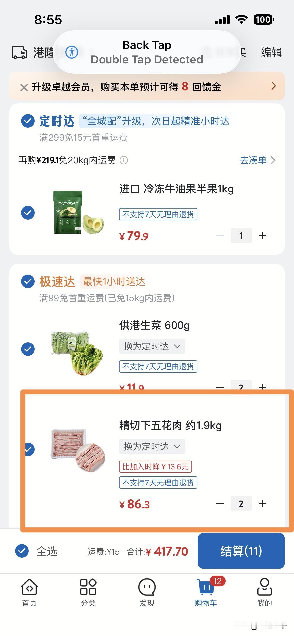 山姆超市猪肉价格下调了! 农贸市场和超市猪肉降价了很多,10块钱一斤的五花肉稀疏平常。 山姆猪肉价格也有所下调。 今天星期六,早上下单山姆,购买下周所需食品,必选的是精切下五花。 价格是每斤22.7元,3.8斤精切下五花,花86.3元,下降的幅度不小(图三)。 这是我在山姆下单网购猪肉,是最便宜的一次。 晒图笔记大赛