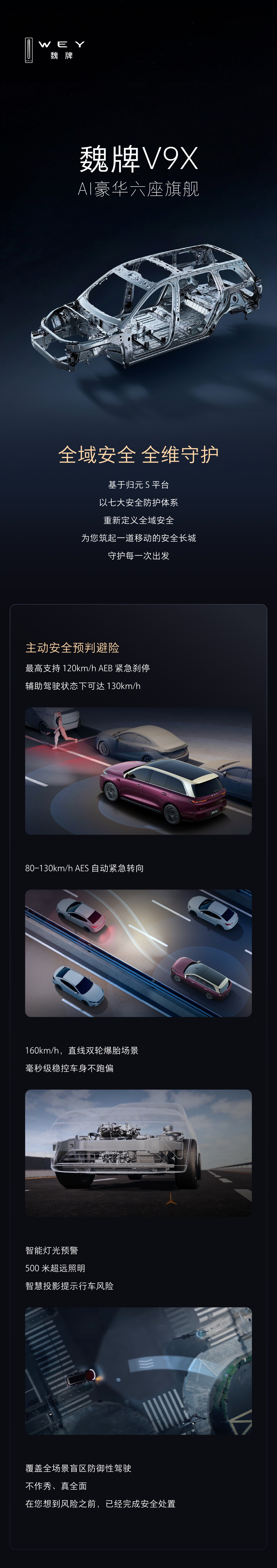 七维守护,一车周全 在魏牌V9X上,我们把安全分成七个维度 每一个维度都没有“刚刚好”,只有“不够好”的冗余 安全,你永远可以相信长城 初心不改,为爱守护