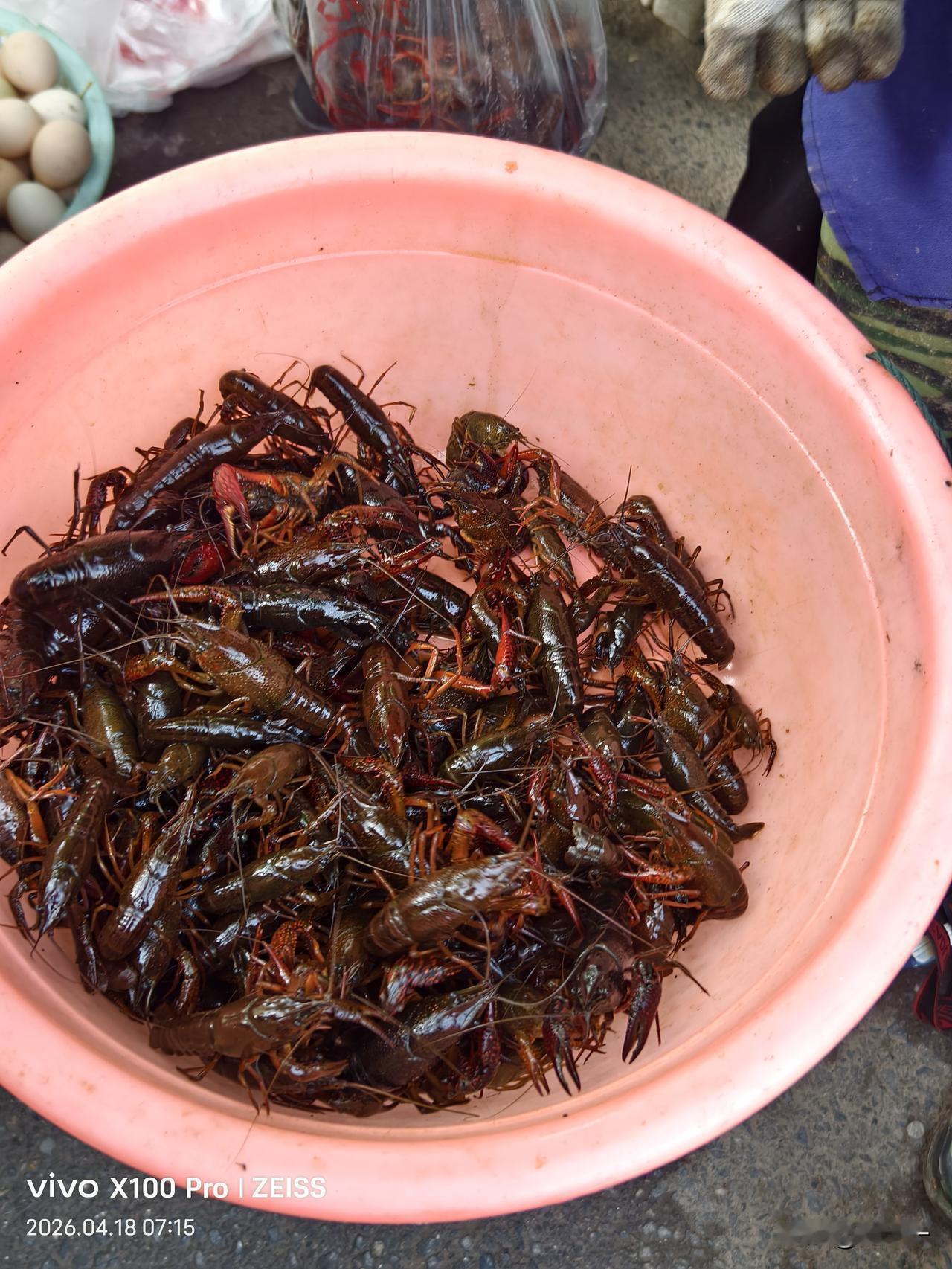 小龙虾大量上市,价格与去年同期便宜不少。 今天去菜市场,发现卖小龙虾的多了起来,固定的水产摊贩前都摆出了几盆鲜活的小龙虾。 也有很多附近农民用桶或者塑料盆装着小龙虾来卖的,他们宣称是在野外抓的野生小龙虾。 一问价格,小号的10元一斤,中号的15元一斤,大号的30元一斤。 这个价格比去年同期便宜不少,去年闰6月,小龙虾上市推迟。 去年这个时期,小龙虾要比今年贵四成左右,中号小龙虾每斤要20元左右。