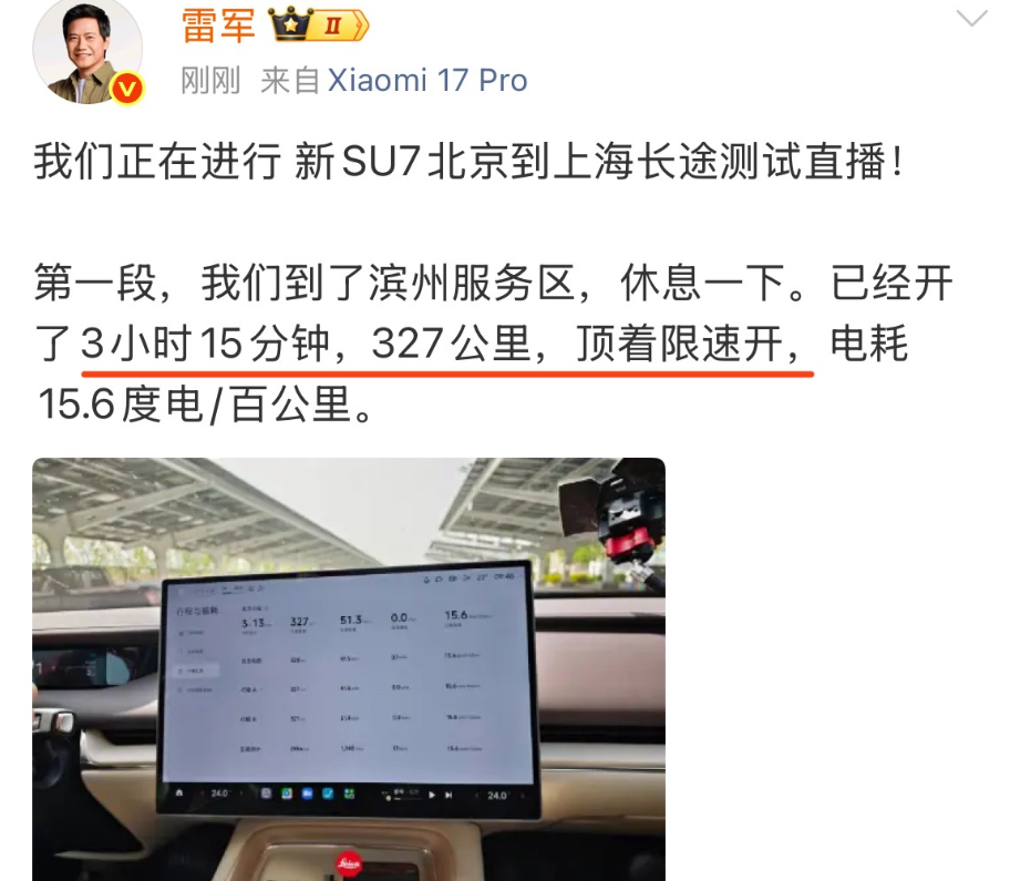 雷总也说是“顶着限速开”。