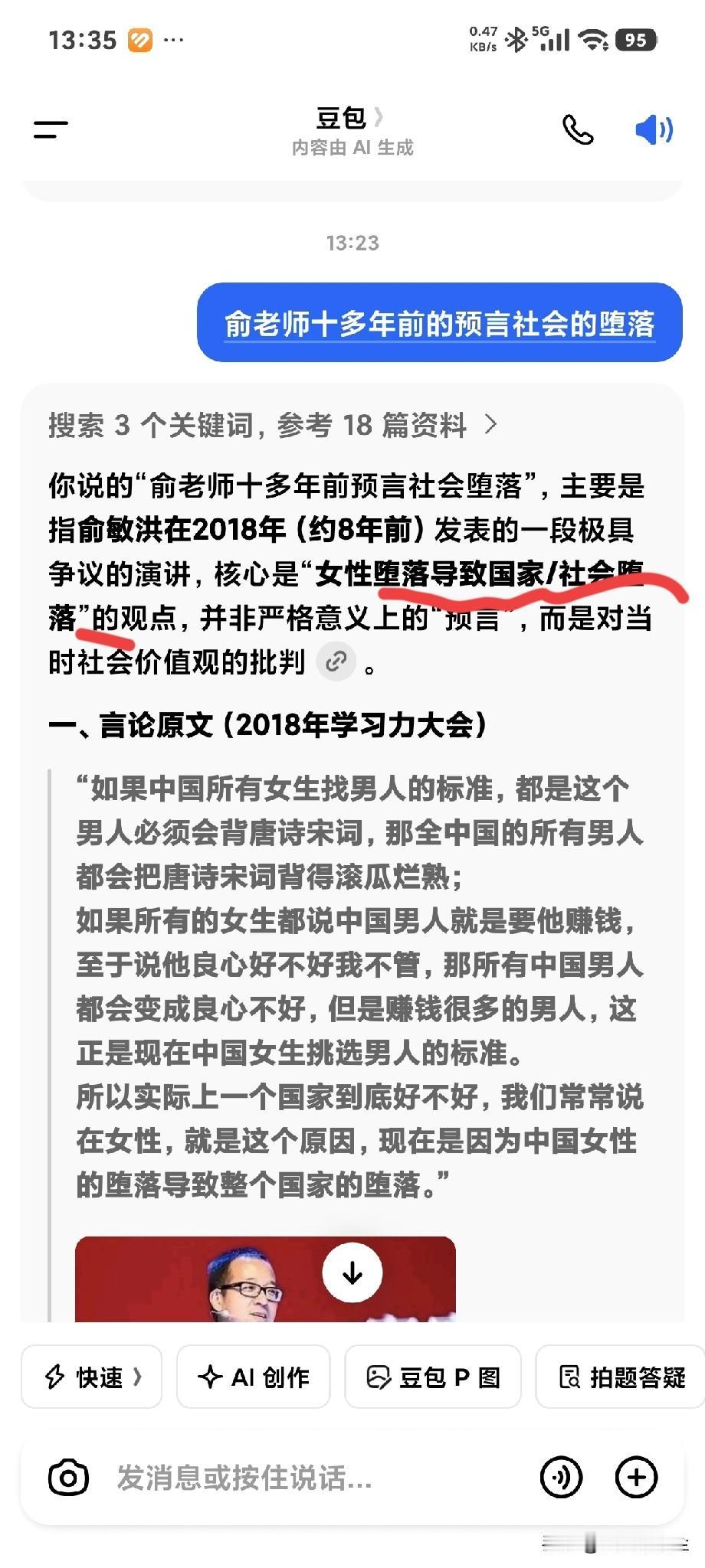 俞敏洪,2018年说过,女性的堕落将导致整个社会的堕落。 一开始我不太能理解他为什么这样说,现在有点理解了。 这和女性的择偶标准有关,他说过,如果女性择偶标准是男性会唐诗,那么男的就会去背唐诗。如果女性择偶标准是钱,男性就会不择手段去赚钱。女性的标准一出,整个社会观念也就一切向钱看了。 一切向钱看的杜会是好还是坏,是进步还是堕落了。 各人心中自有评判。女生成长的代价 低谷女性 逆境女性 行业堕落 堕落习惯