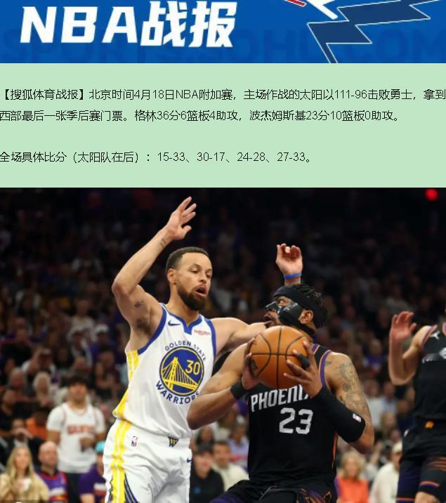 都别急着哭坟!勇士这艘破船,不是今天沉的——是库里亲手把舱门焊死的,格林还往窟窿里灌了桶水泥。 4月18号这场球,看得我直乐。不是看球乐,是看一群人还在那"王朝末年"自我感动,乐。111-94,太阳活活打死勇士,啥叫"赢或回家"?这叫"您哪位?滚吧"! 开球我就跟哥们儿说:这球悬。为啥?库里那眼神就不对,疲惫里带着侥幸。果不其然,16投4中,三分10中3,17分!这还是"萌神"吗?这是"蒙圈的神"!生死战拿这数据,别跟我提37岁,老了就得认,铁了就得挨骂。你顶薪拿着,关键时刻连筐都找不着——这是犯罪,不是遗憾。 更逗的是追梦格林。5分2板,数据寒碜不说,最后跟布克对喷被驱逐,活脱脱"输球又输人"的滑稽戏。以前管这叫激情,现在看就是没招了撒泼。王朝最后一场,格林用嘴炮给金州十年画句号,讽刺吗?太讽刺了。 反观人家太阳,杰伦-格林(Jalen Green)36分,14中20,三分8中14平附加赛纪录,眼珠子冒火!这才是"赢或回家"该有的匪气。没罚球,纯分,生生把勇士脸皮撕下来当脚垫。布克划水半场,第三节一发力,4个助攻刀刀致命——这才是超巨的节奏感。 唯一想鼓掌的是波杰姆斯基,23分10板,小伙子真玩命了。但一条破船就他一人舀水,有用吗?只能让沉船姿势稍微体面点。 说到底,这场球暴露的不是"勇士老了",是"勇士僵了"。科尔战术被完爆,库里关键球能力断崖,格林情绪管理归零——三件套凑齐,不输才没天理。 别念叨"下赛季没人想碰到我们"了,这是告别演出,而且演砸了。太阳踩着沉船进季后赛,打雷霆,那是后浪该去的地方。至于库里?回家钓鱼吧,鱼竿可能比今天的手感准点。 这球,残忍吗?残忍。过瘾吗?真TM过瘾!勇士负太阳无缘季后赛