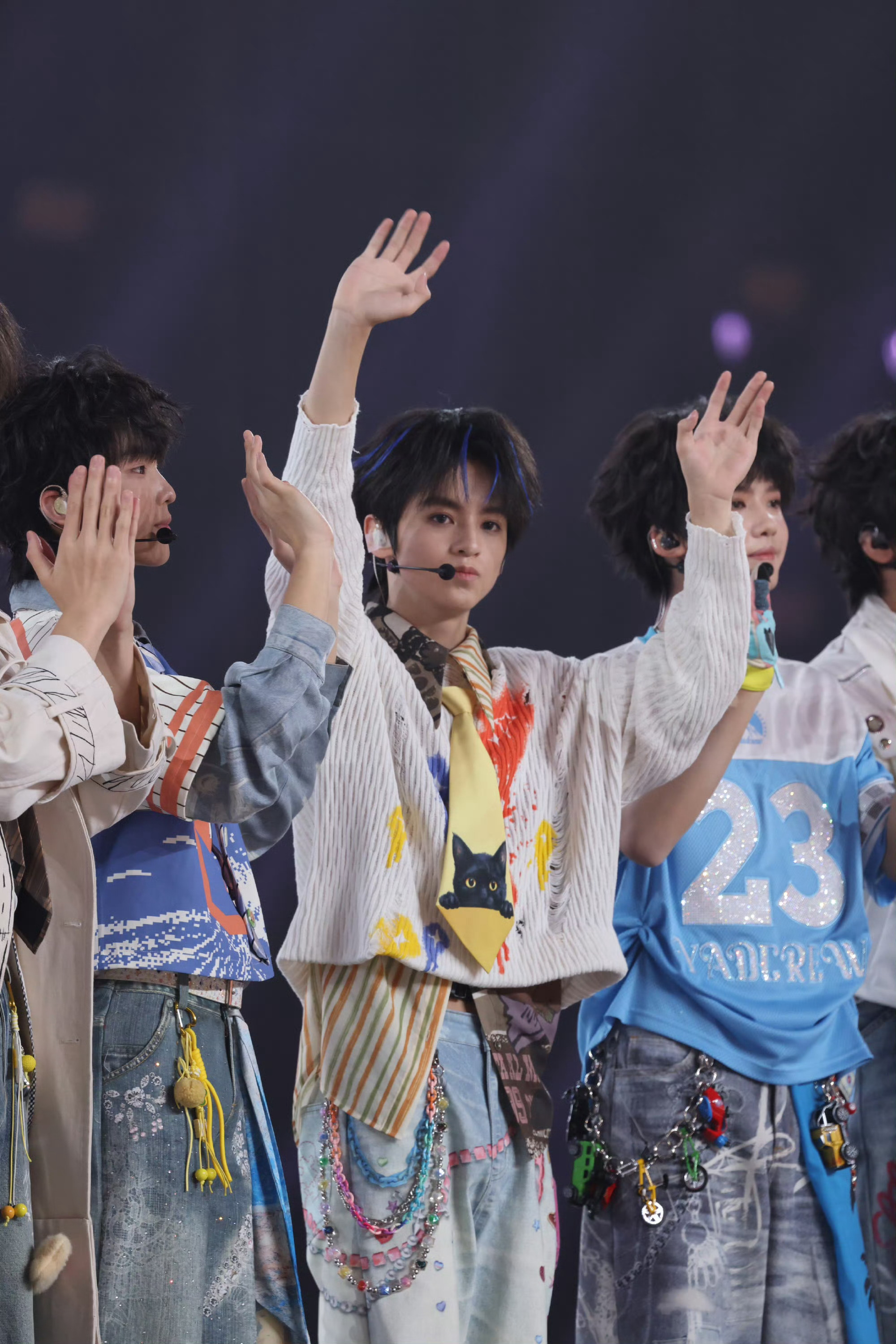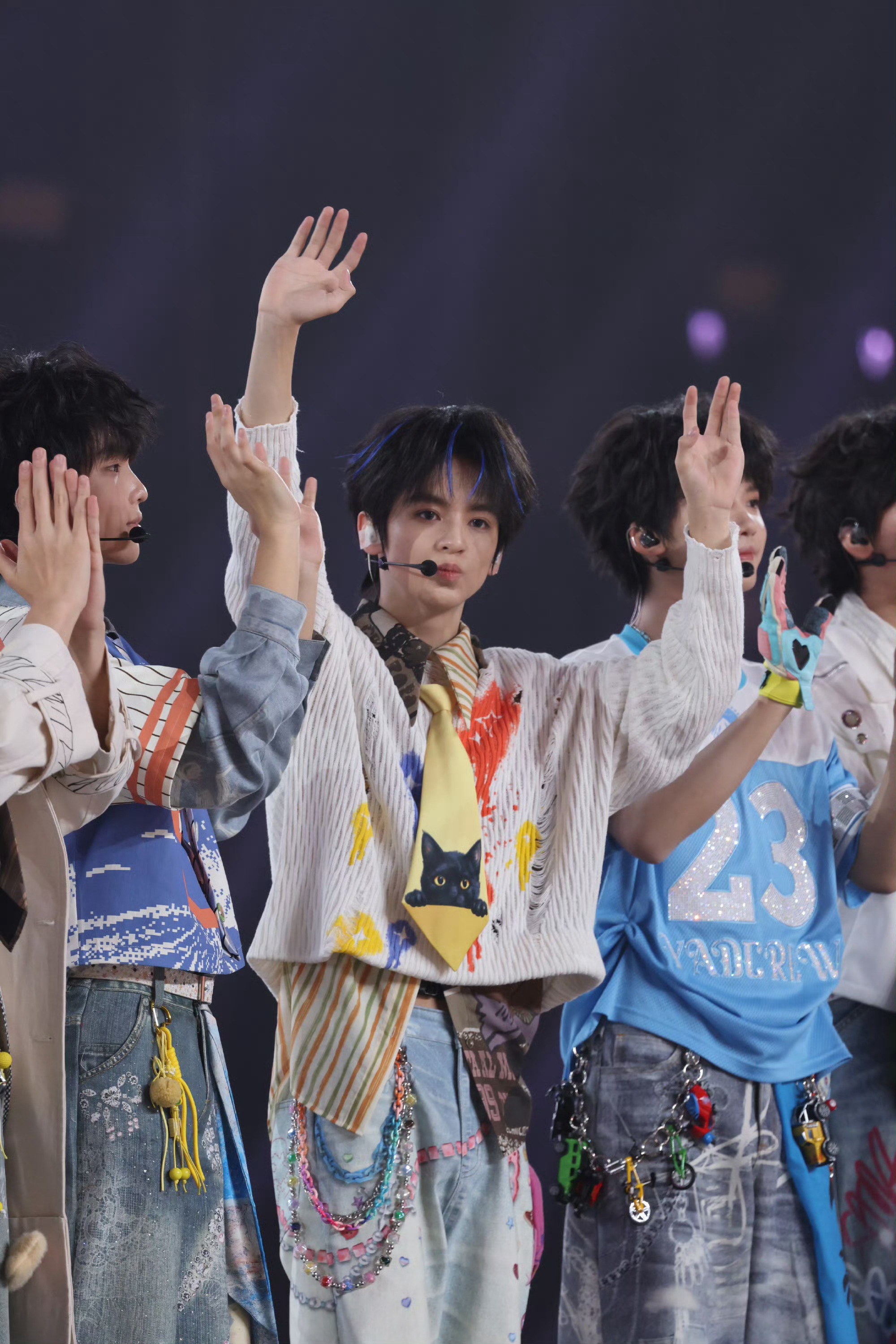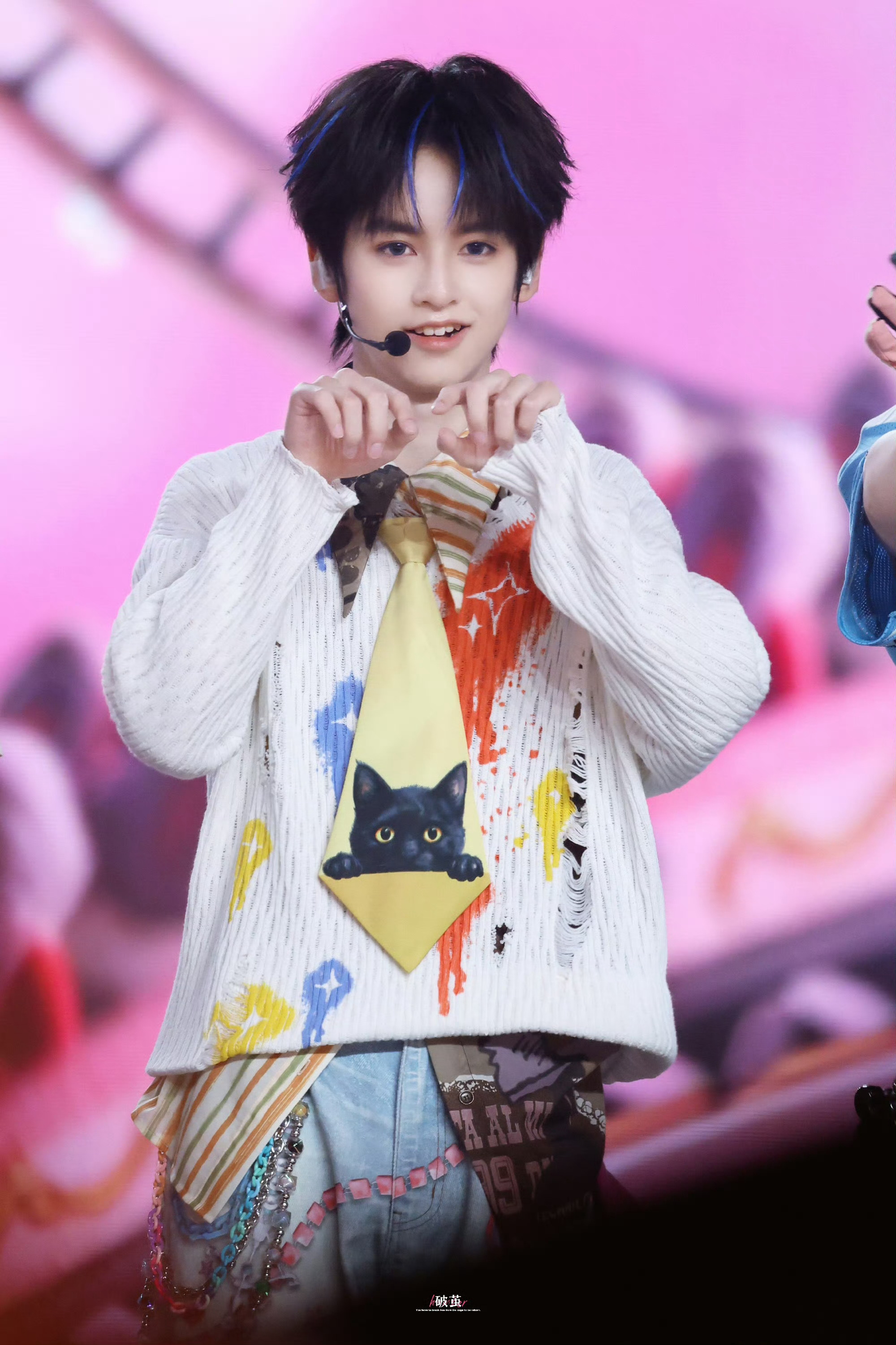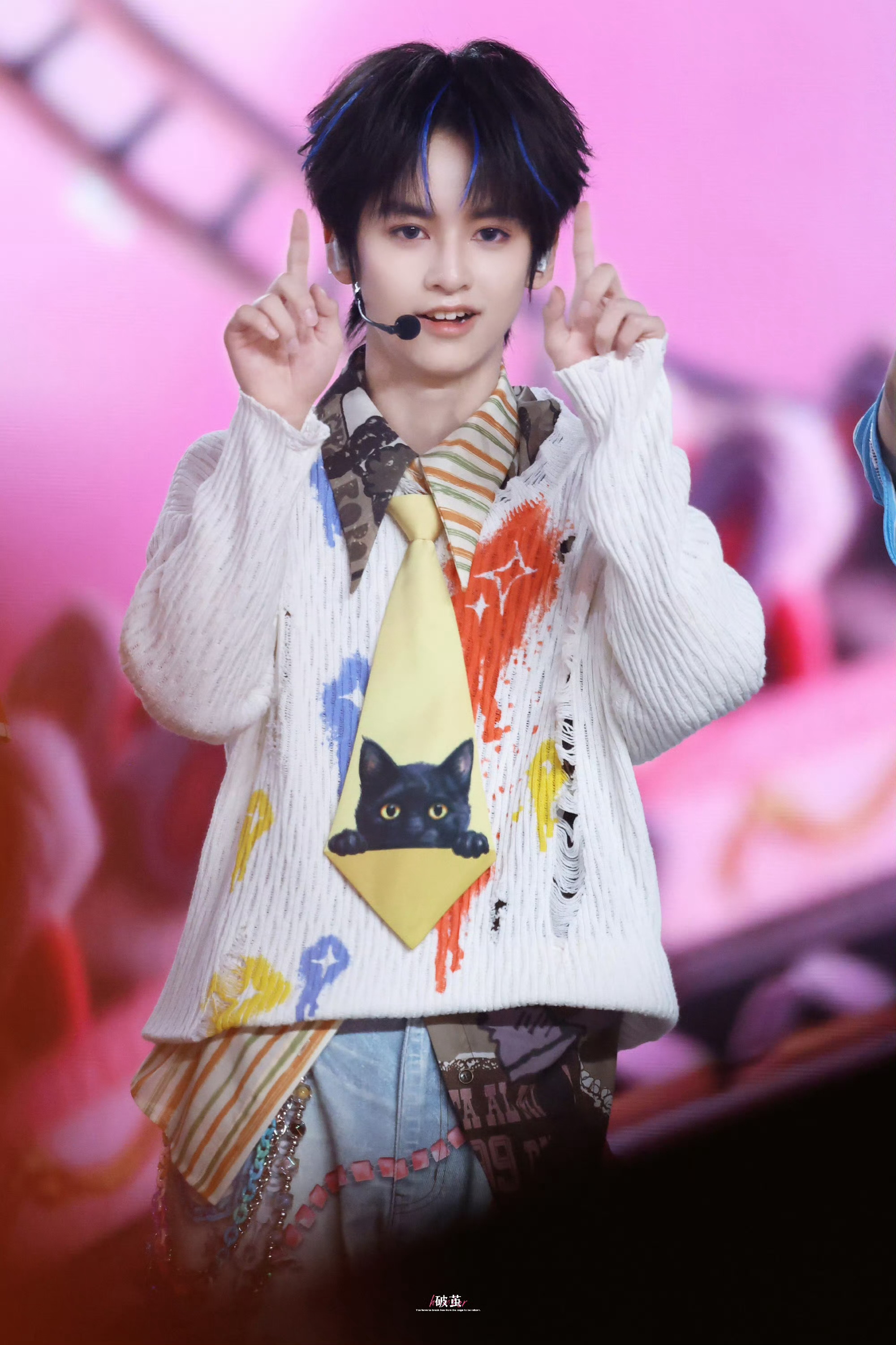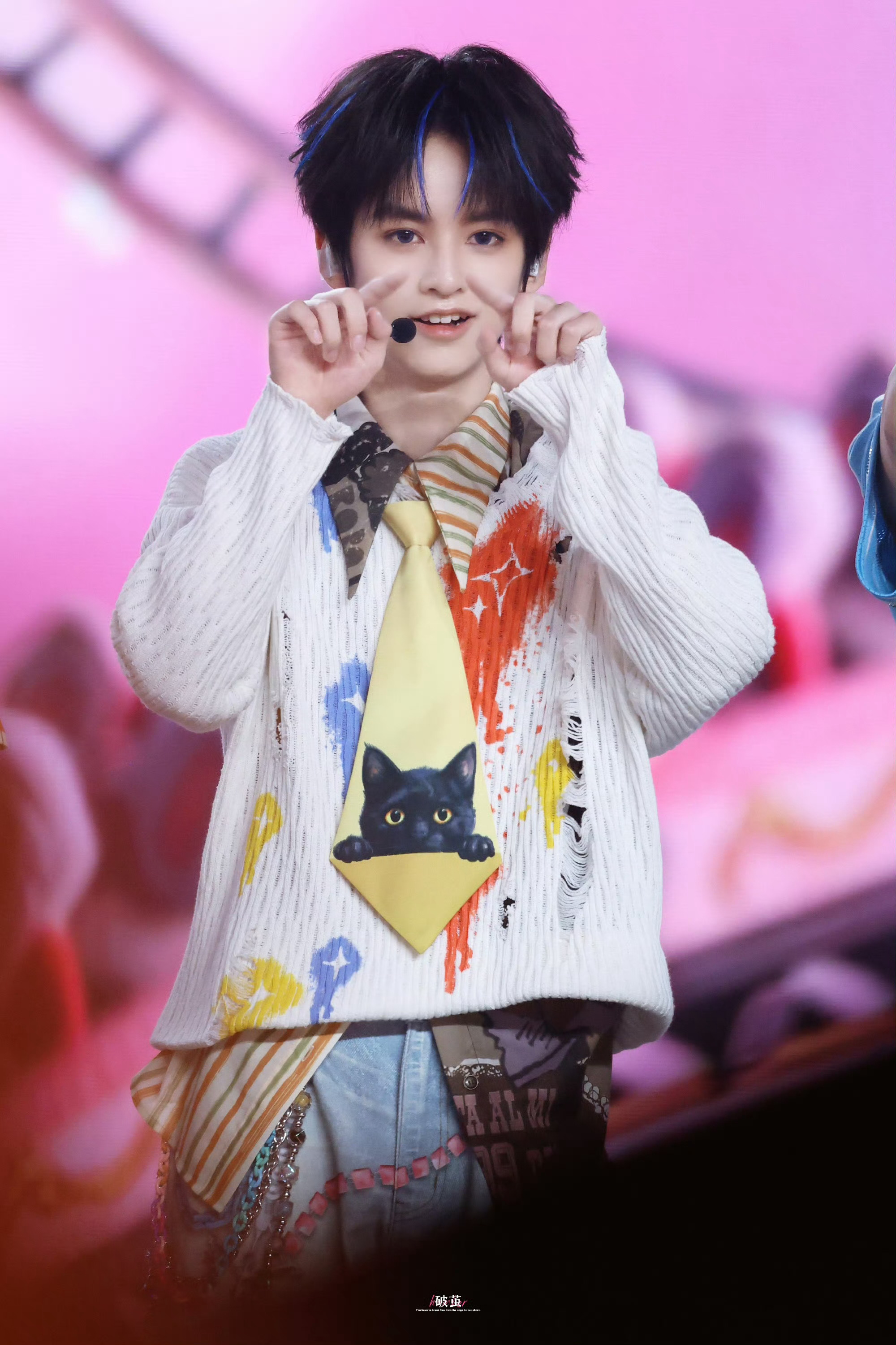 杨涵博画心饭撒 杨涵博今日份见面会路透蓝色挑染+小猫领带敲可爱🐱画心饭撒好甜杨涵博小猫领带