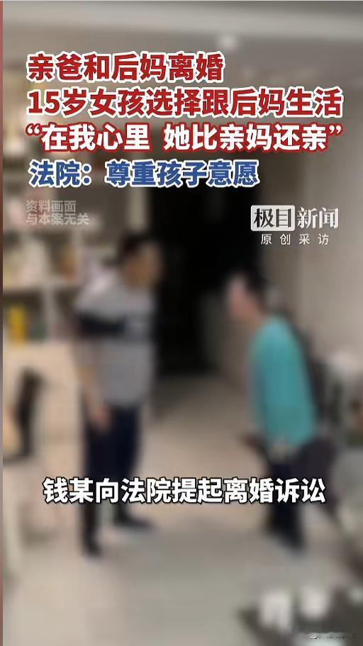 “被三个女人抛弃?”近日,湖北恩施,一二婚男子因感情不和,向法院提出离婚,可是他跟前妻生的亲生女儿,却不愿意跟他,反而想要跟着后妈一起生活。最后法院支持的孩子的请求,将孩子判给继母抚养。网友:这男的得多差劲? 一般再婚家庭,孩子跟继父母都不怎么亲,更愿意和亲父母待在一起。如果再婚家庭不幸破裂,孩子一般也是跟亲父母,很少会出现愿意跟继父母一起的。 据媒体报道,钱先生这第二段婚姻,也持续十几年了。头婚离的时候,女儿小钱判给了自己,他就带着女儿,又找了一个,那时候女儿才3岁,现在一晃都15了。 最近这段时间,他跟现任妻子又闹了矛盾,感觉过不下去了,就向法院申请了离婚。可没想到,这一次女儿竟然不愿意跟自己了,口口声声要跟着继母生活。 小钱说,虽然是继母,但在她心里,她比亲妈都亲。这么些年来,继母对她一直视如己出,生活起居、学习辅导,各方面做得都很好,无微不至。这也让小钱打心眼里接受了这位妈妈。 法官经过询问,小钱的继母也愿意继续抚养小钱,于是最终尊重了小钱的意愿,小钱由继母抚养,生父钱先生也承诺每个月支付抚养费。 网友看后表示,头婚把老婆丢了,二婚把女儿丢了,这男子过得,也是没谁了。经过两个老婆和女儿的认证,他作为丈夫和父亲应该不称职,这后妈很伟大了! 信息来源:《亲爸和后妈离婚,15岁女孩选择跟后妈生活“在我心里,她比亲妈还亲”,法院:尊重孩子意愿》极目新闻