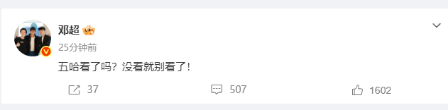 邓超反向安利五哈邓超叫观众别看五哈了 看多了千篇一律的正面宣传,第一次见邓超反向安利五哈,越劝别看越好奇,反倒让人满心想去追。(物料cr网络)