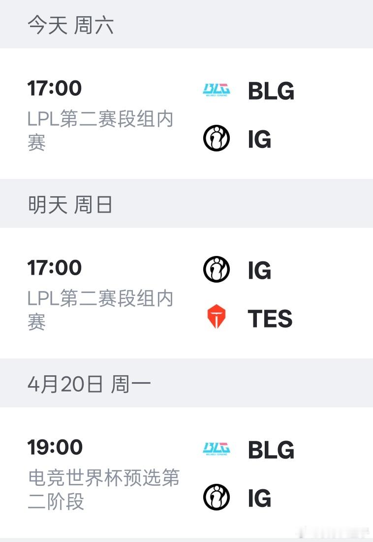 iG背靠背靠背超难赛程 iG今天开启背靠背靠背的超难赛程,两场LPL和一场EWC预选赛,三天之内连打BLG、TES。——
